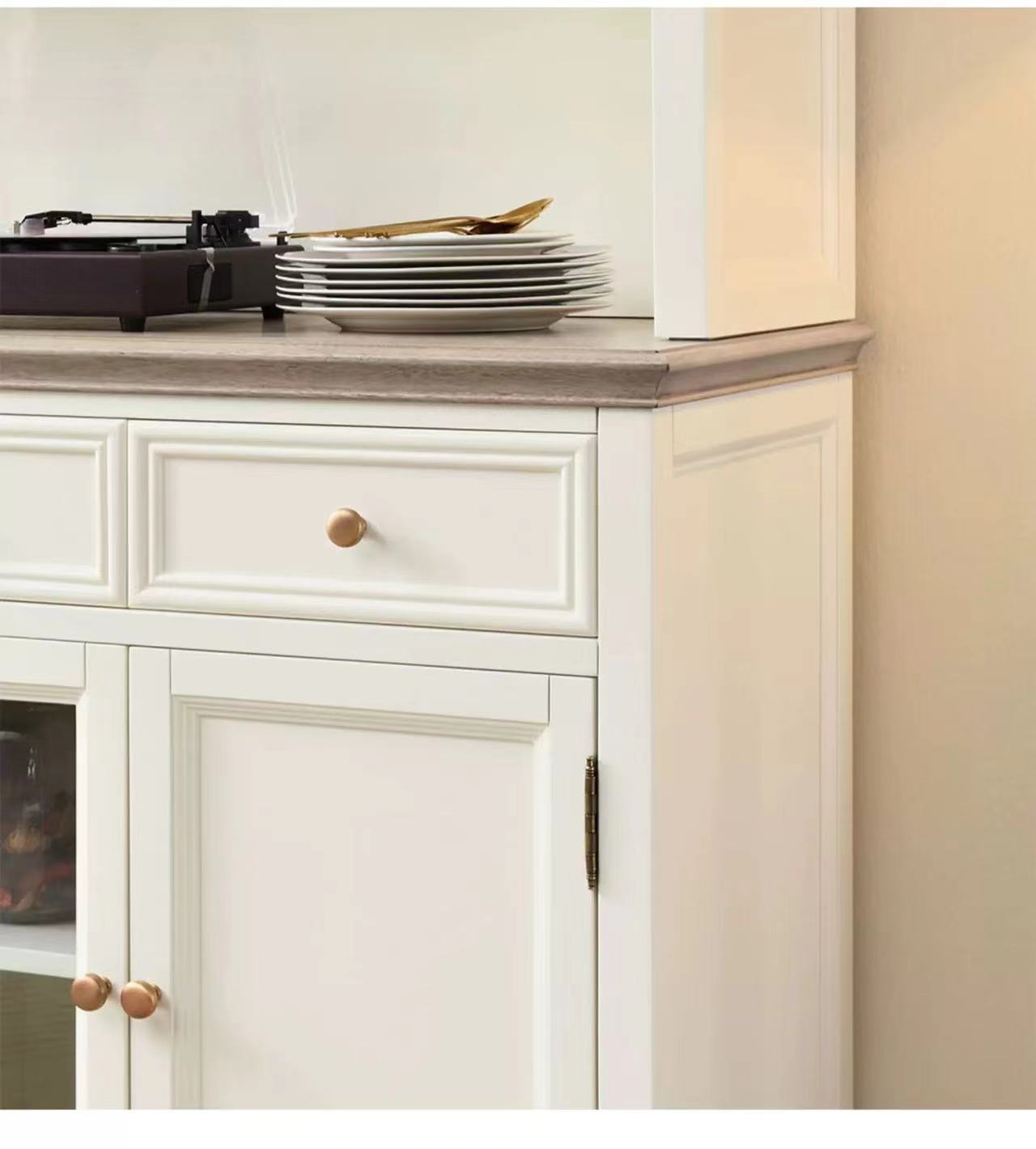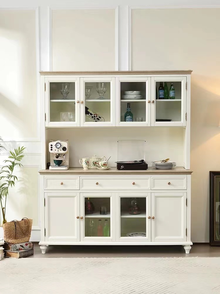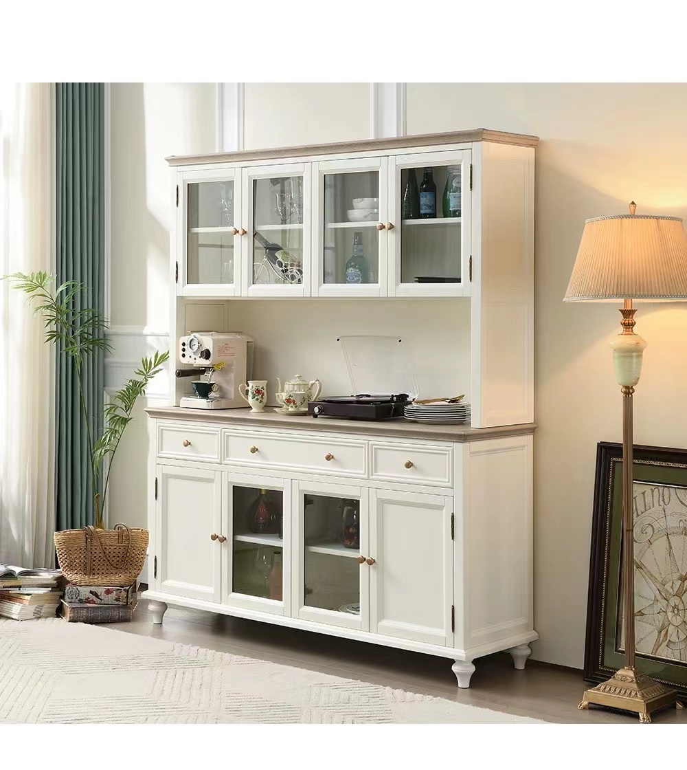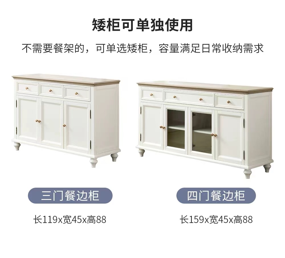 蛋奶白+卡其灰套色 餐边柜带餐架