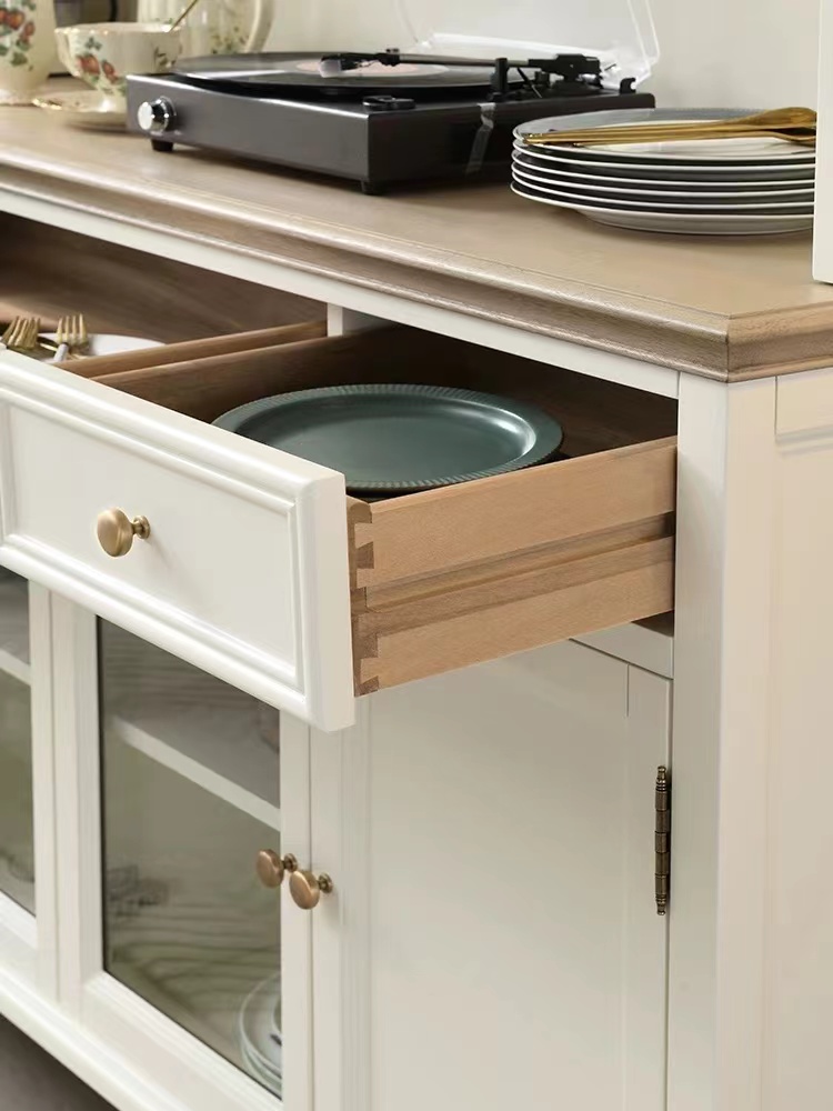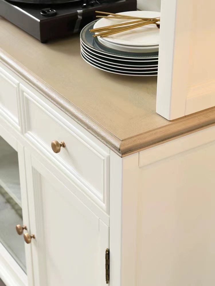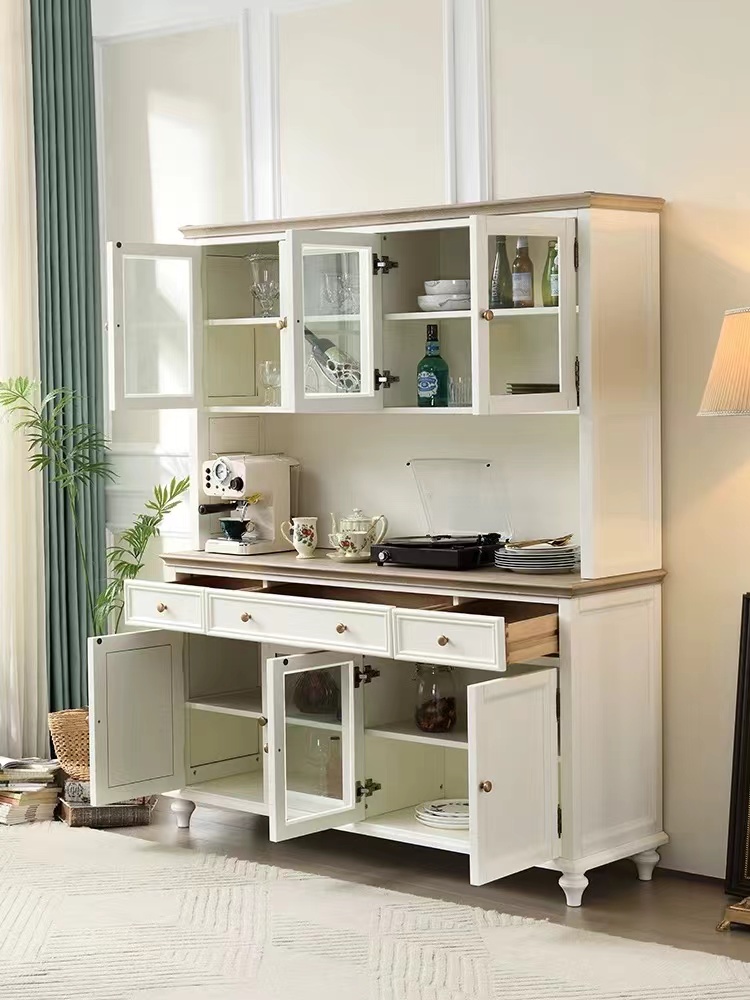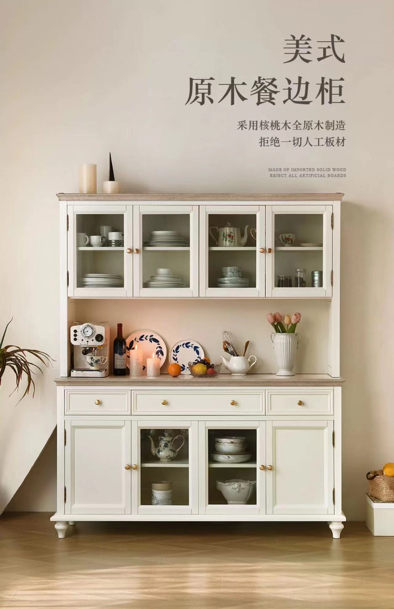 蛋奶白+卡其灰套色 餐边柜带餐架