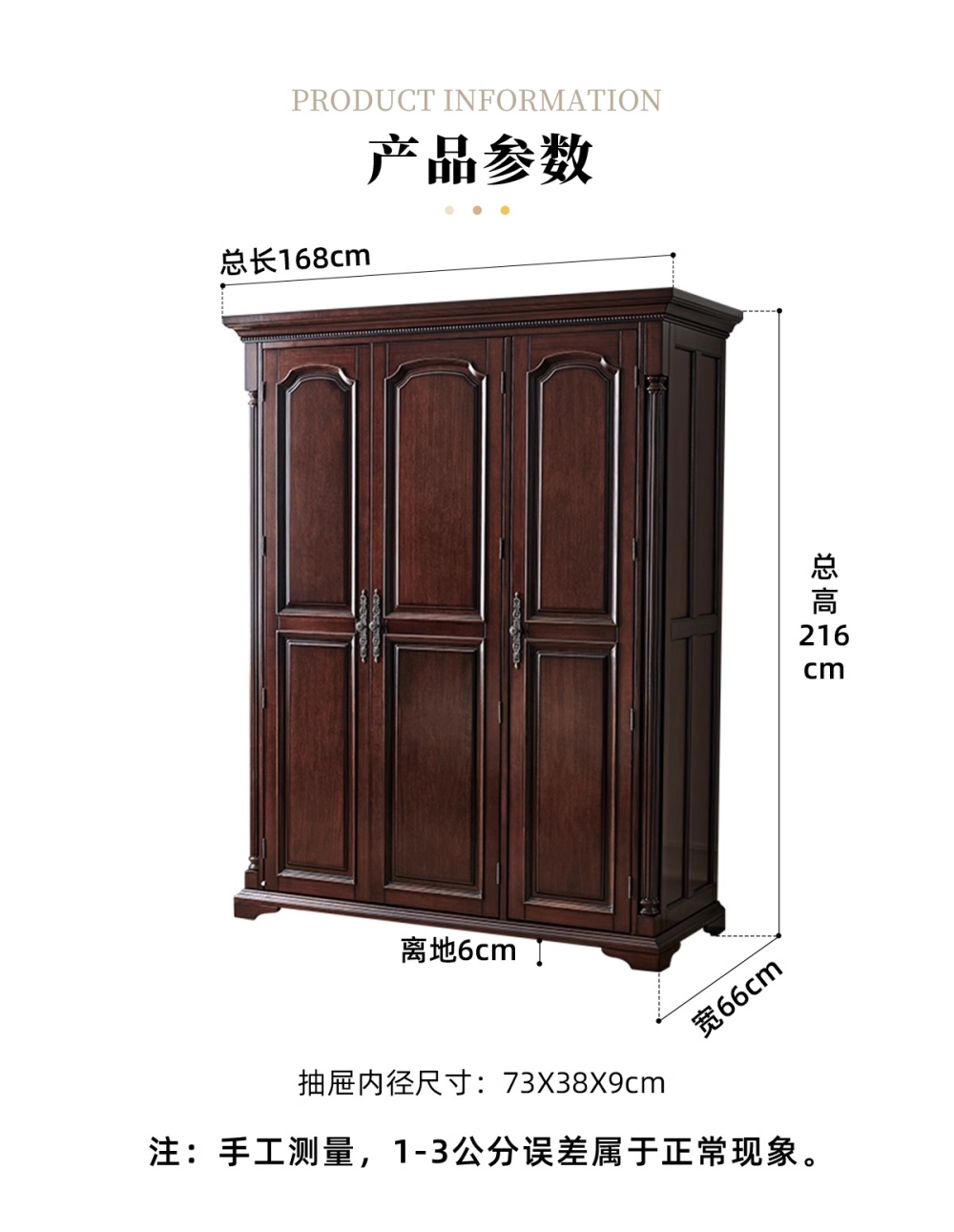 全实木金丝柚木三门衣柜