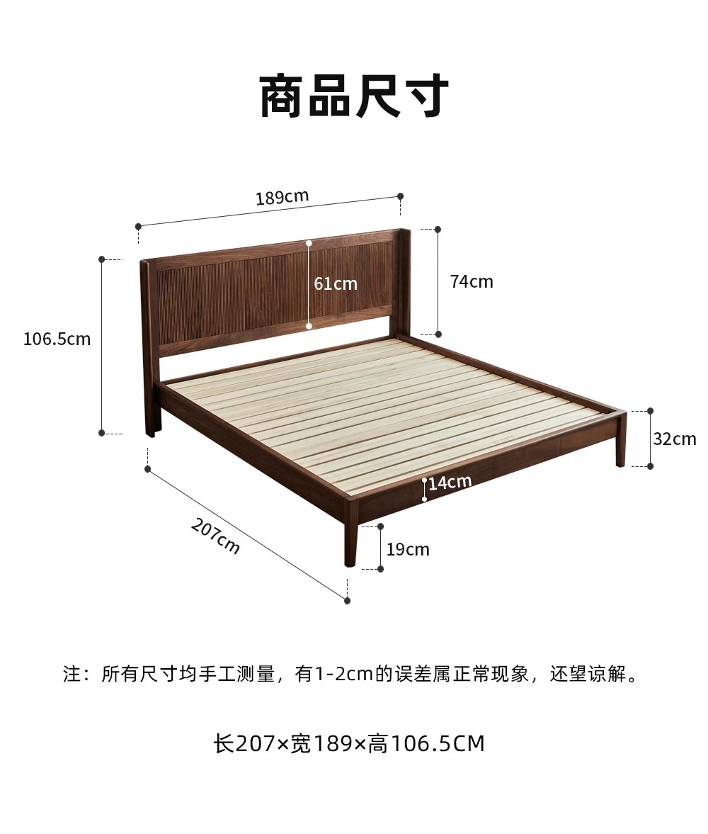 1.8m黑胡桃床