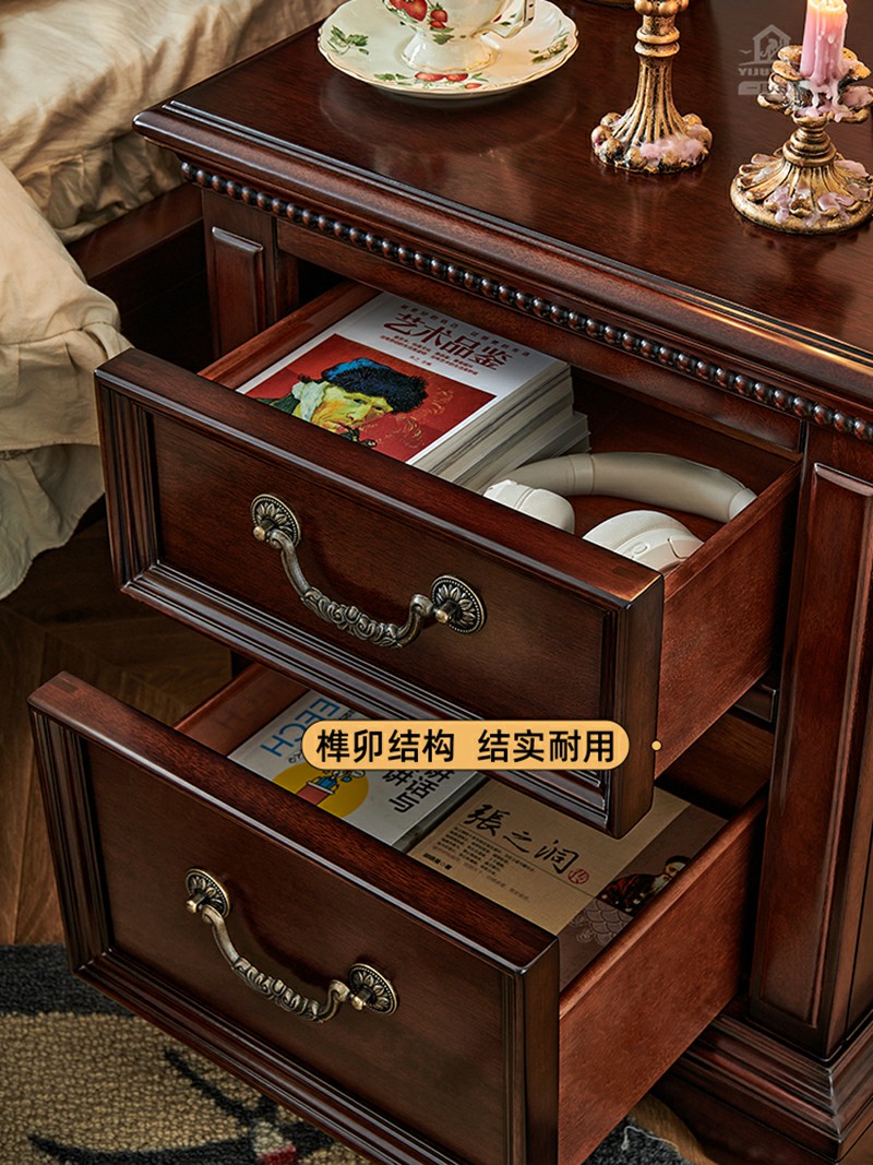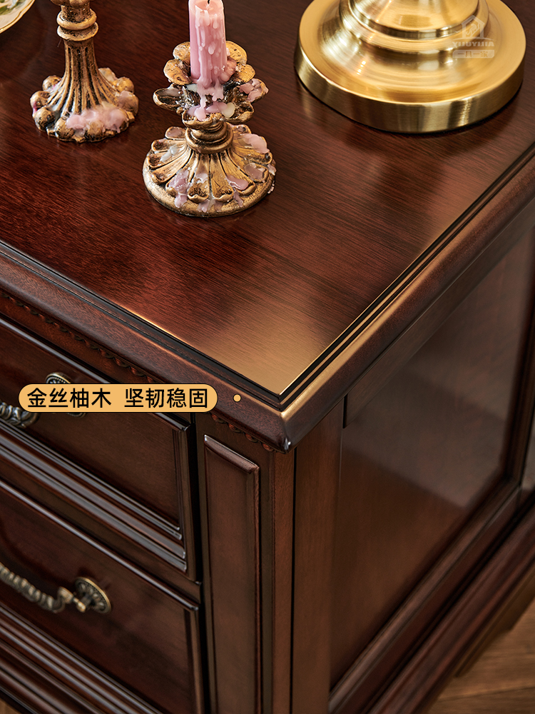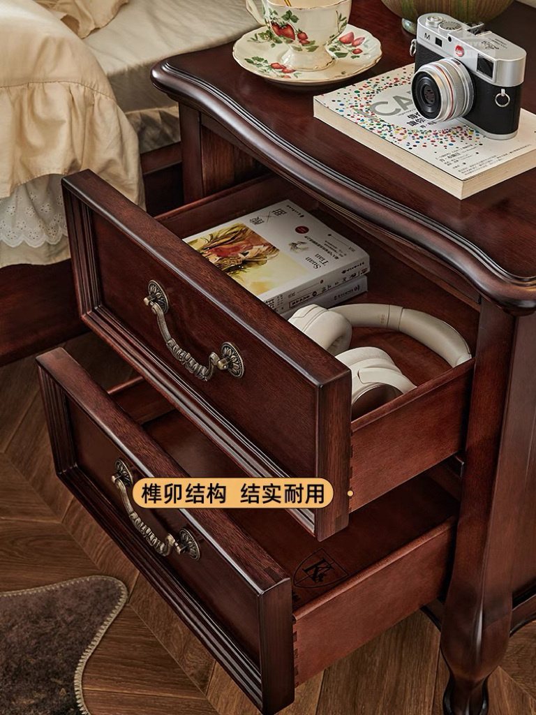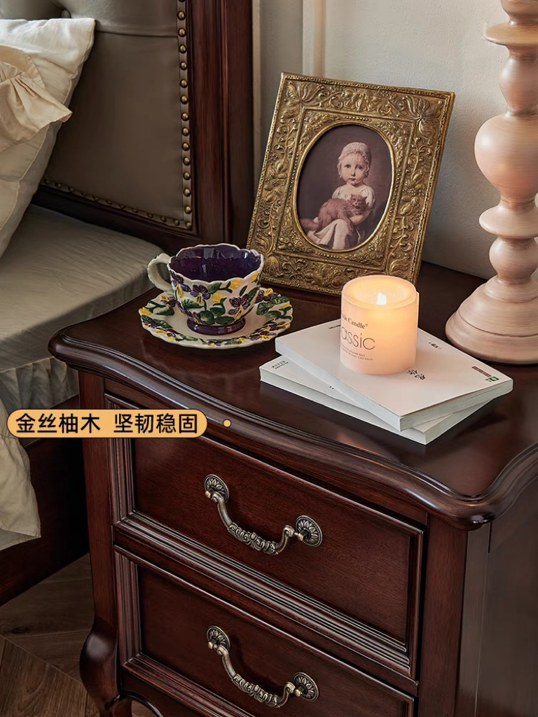 美式金丝柚木床头柜(50cm)
