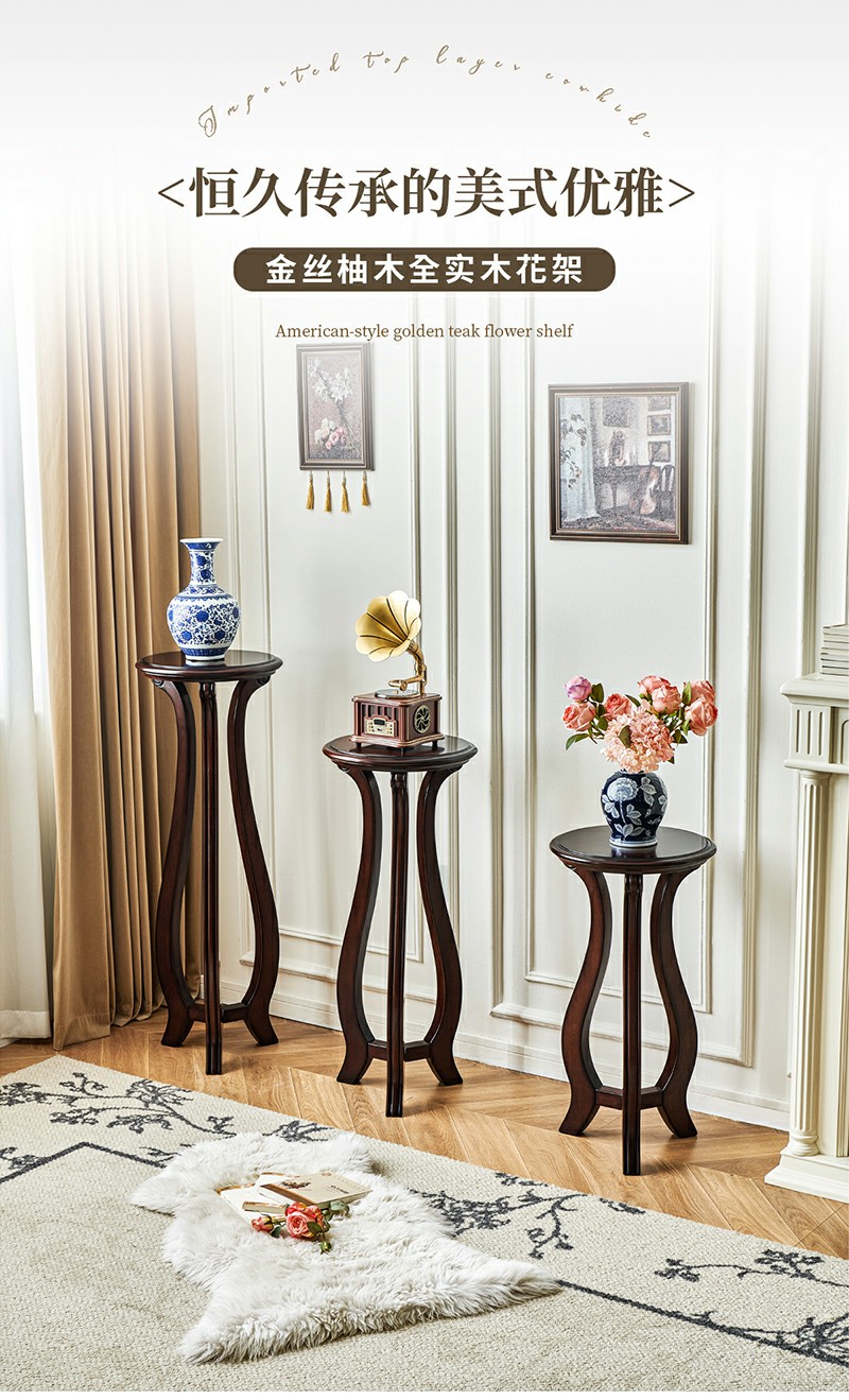 美式金丝柚木中花架