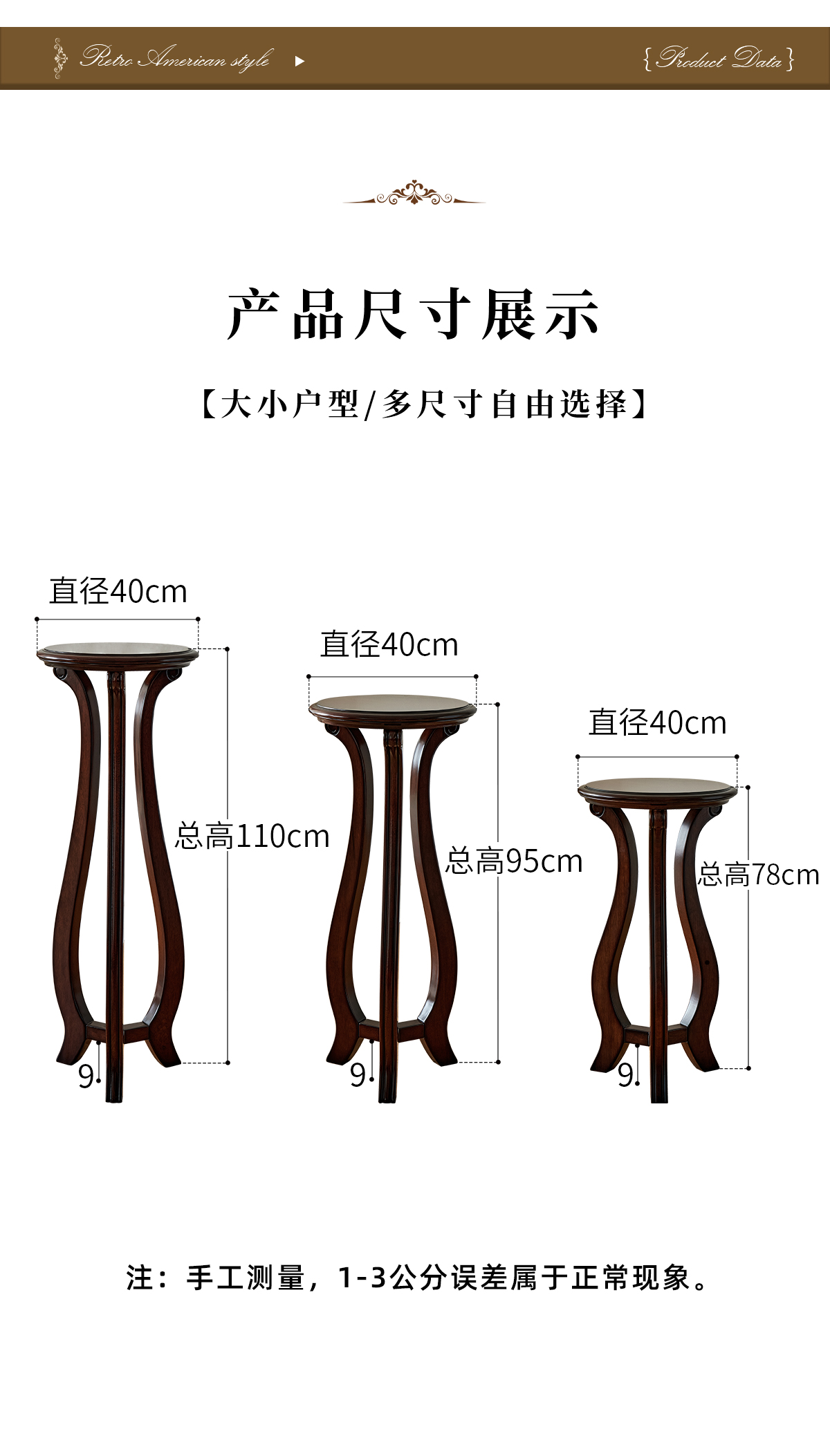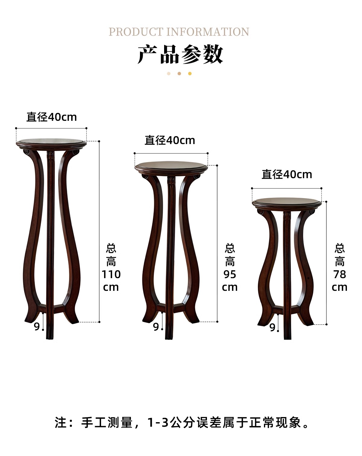 美式金丝柚木花架(高中低)组合