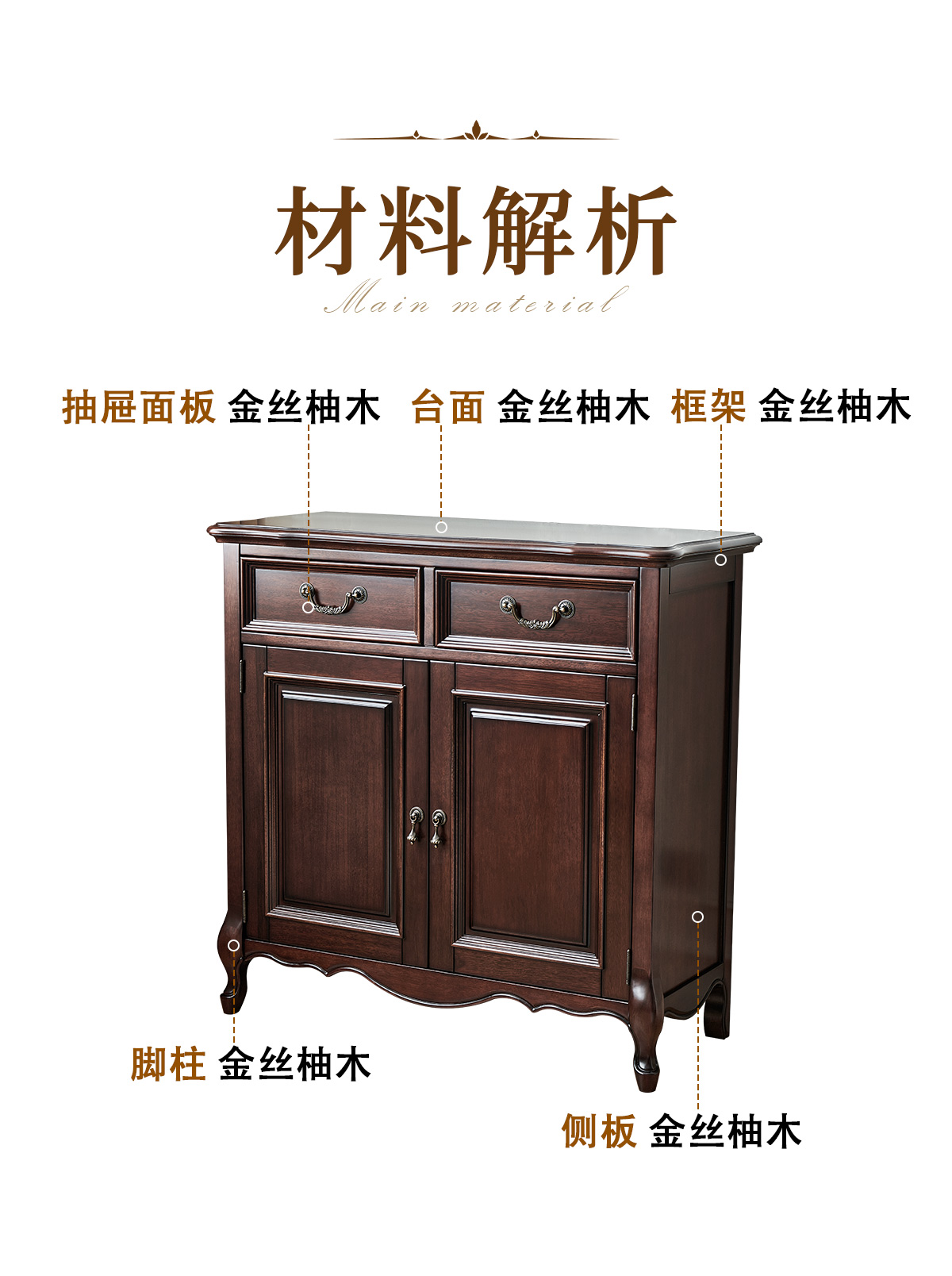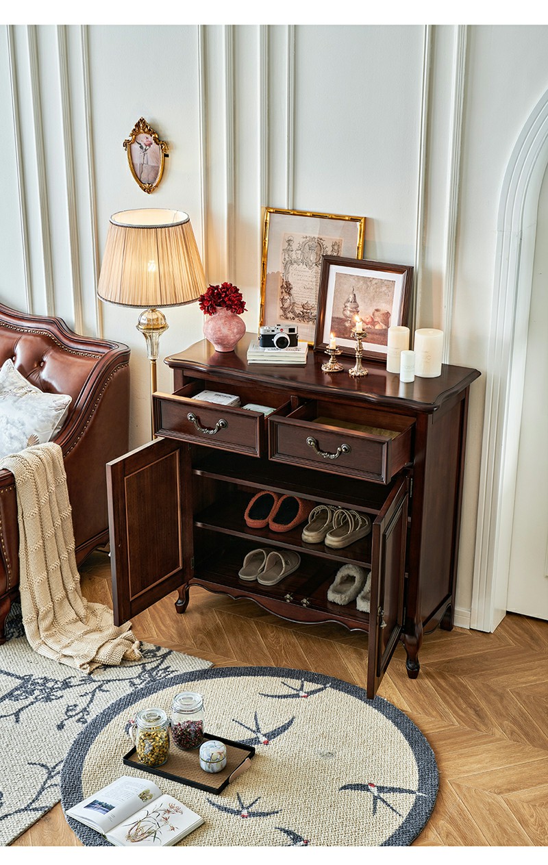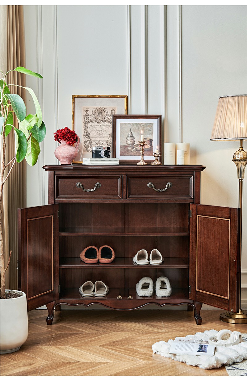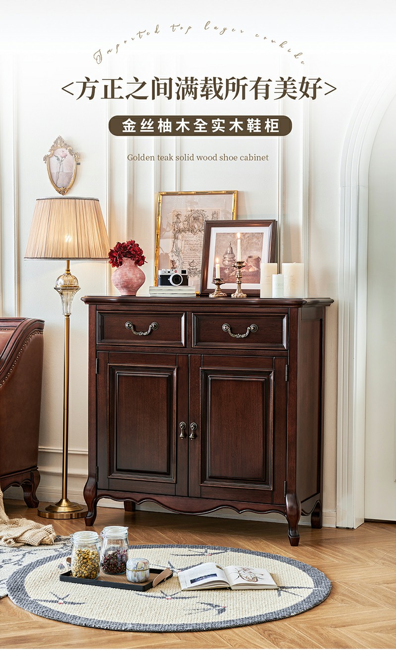 金丝柚木全实木鞋柜
