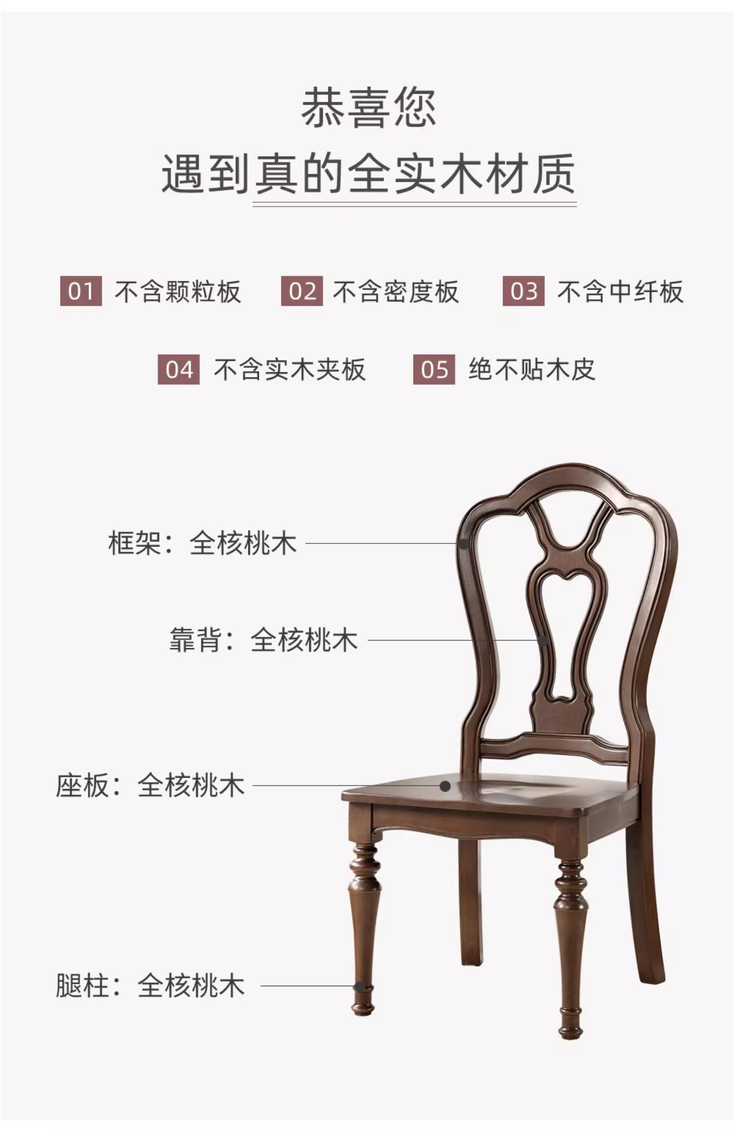 胡桃色原木餐椅一把 (两把起拍)