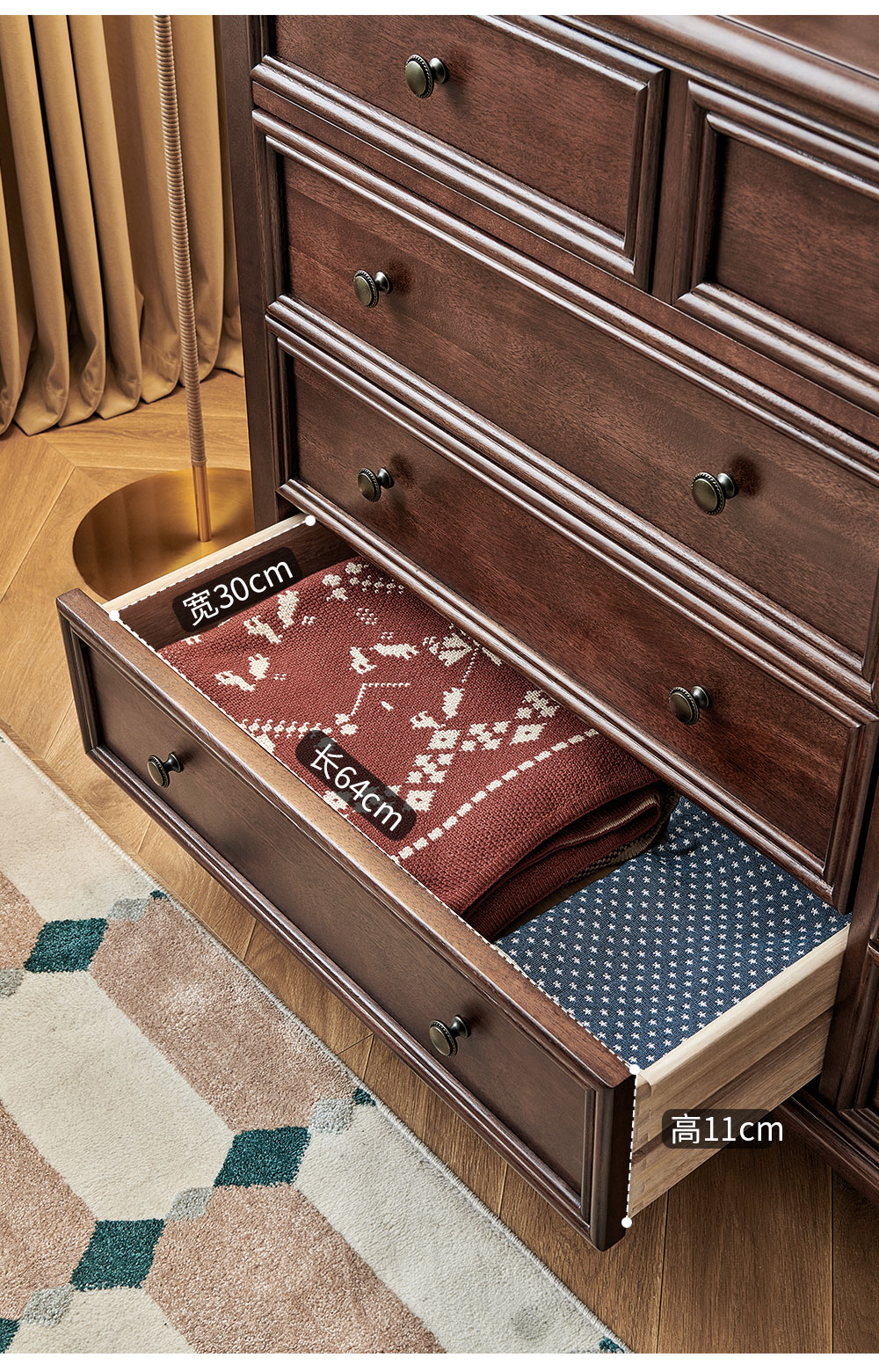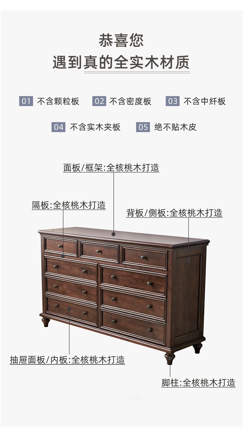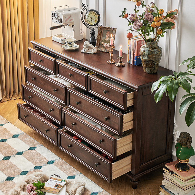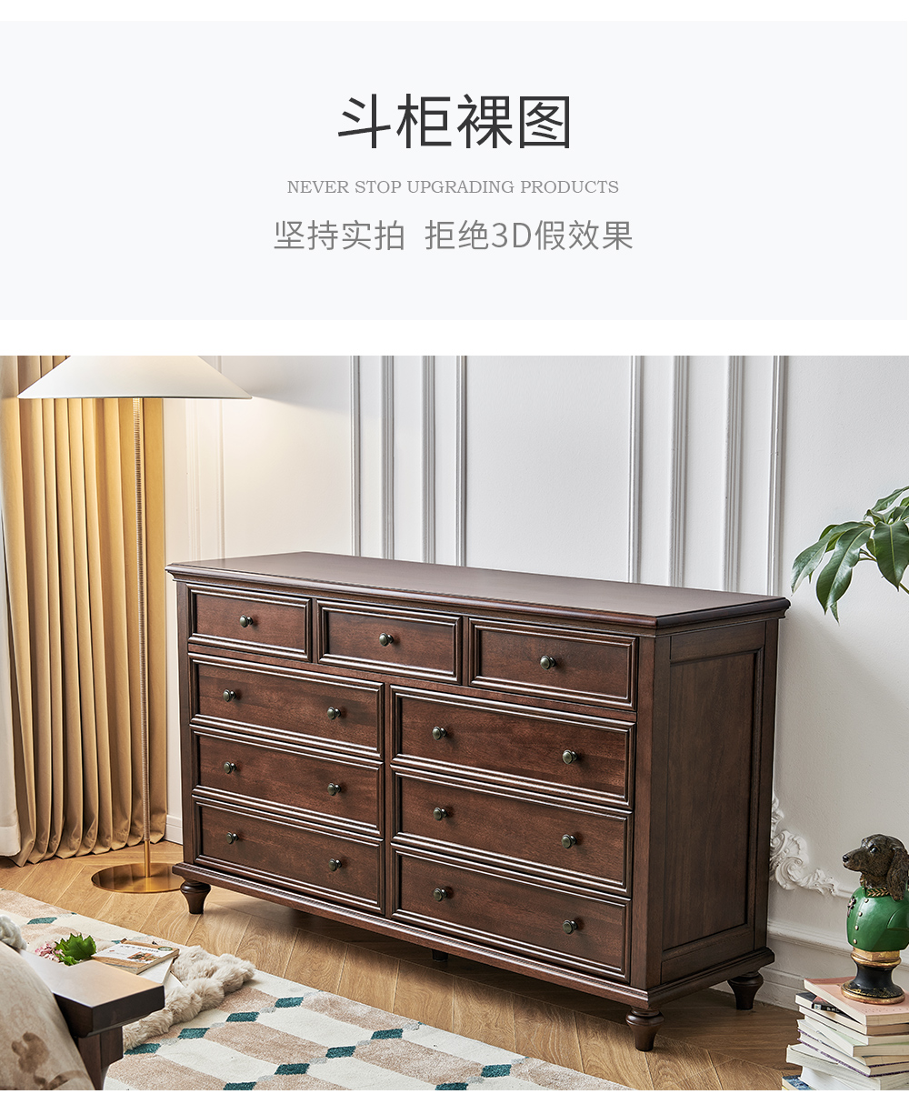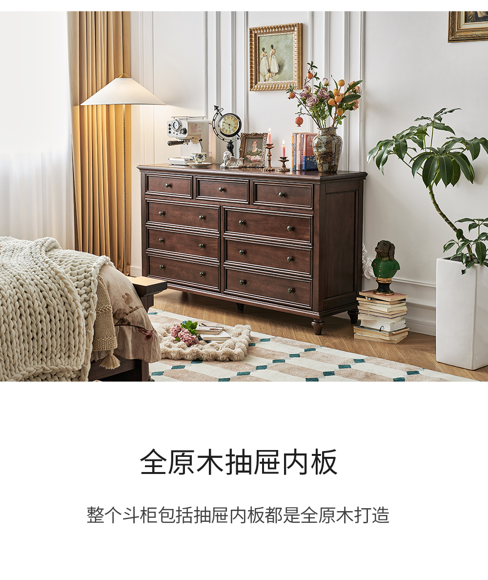 1.5米胡桃色九斗柜 全实木无辅材