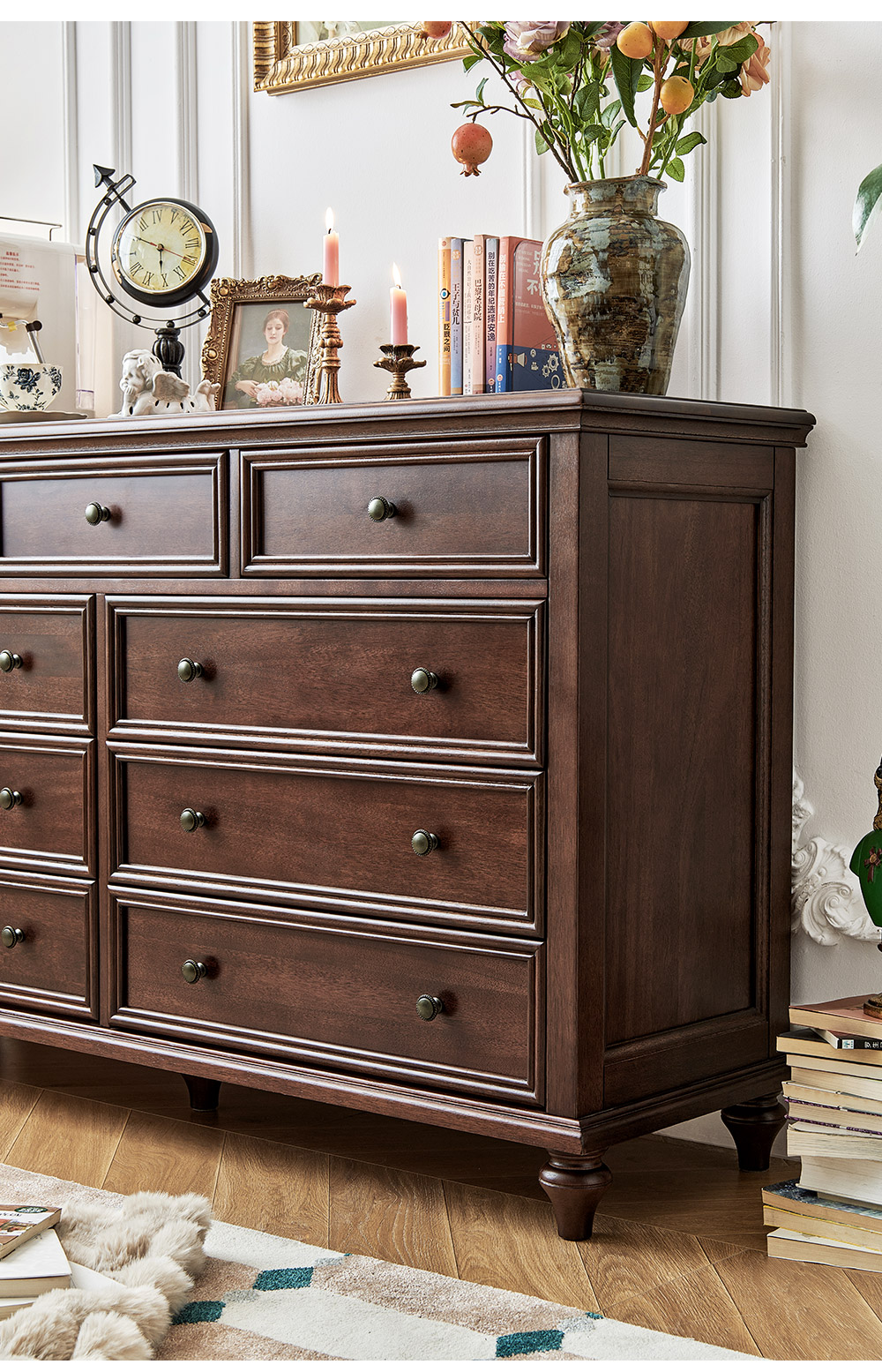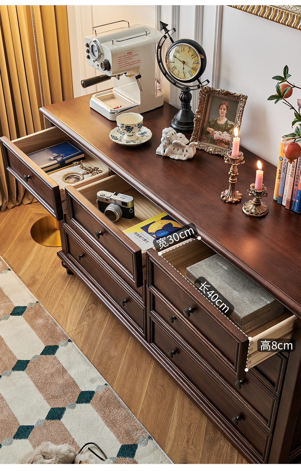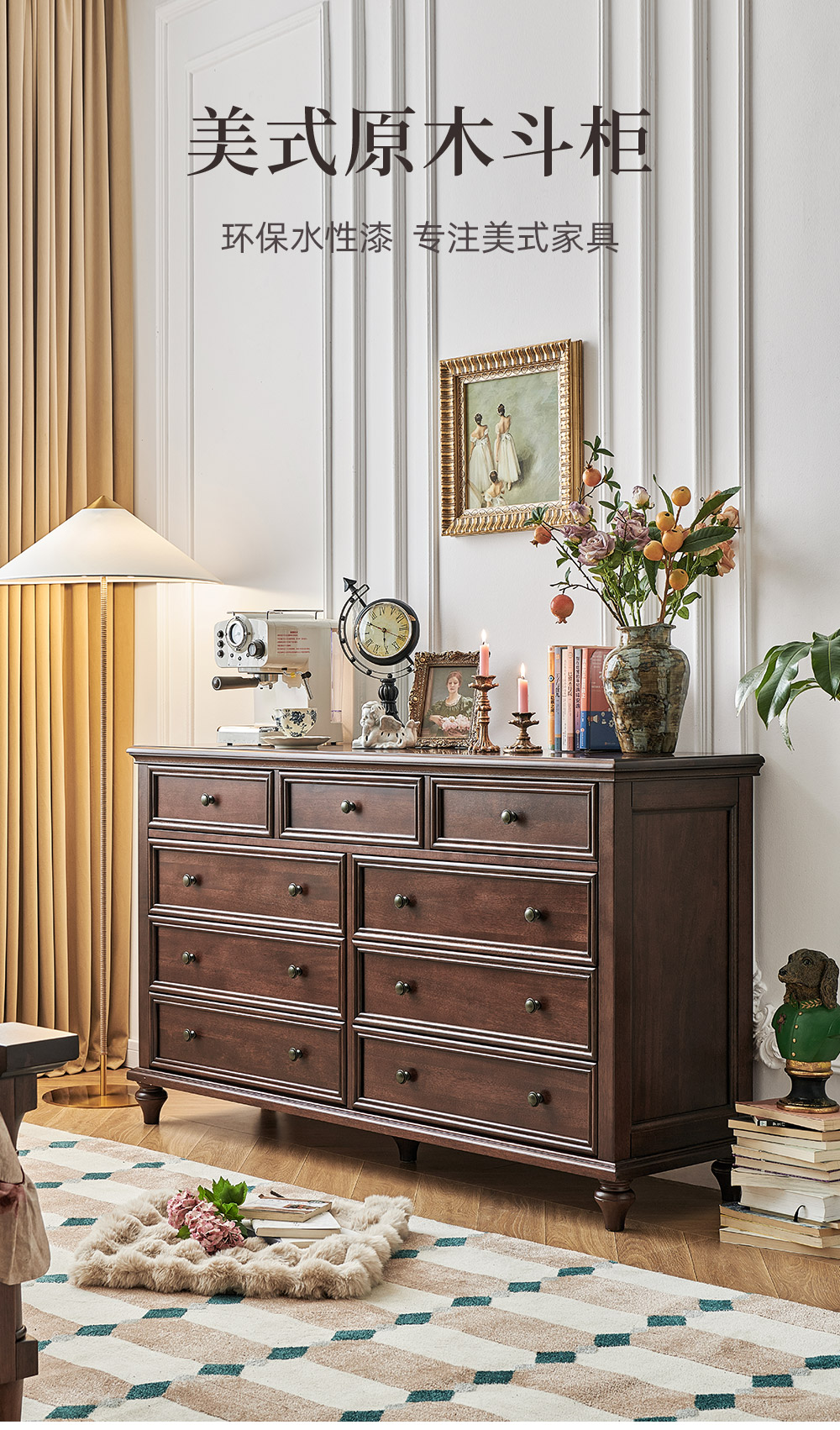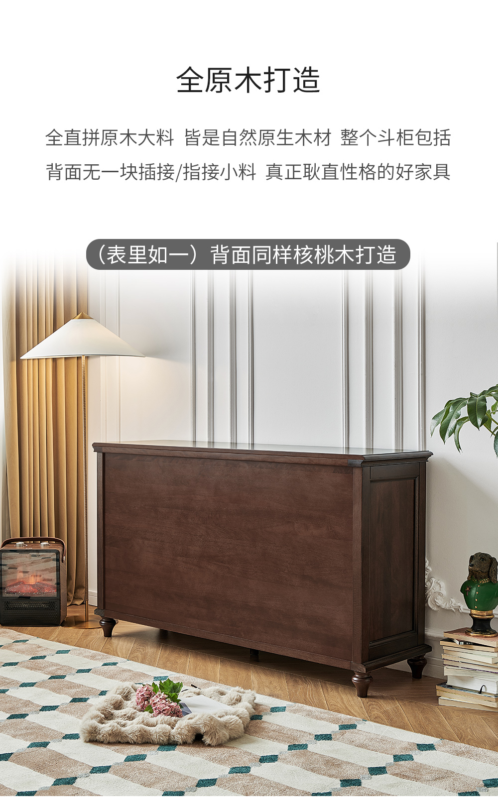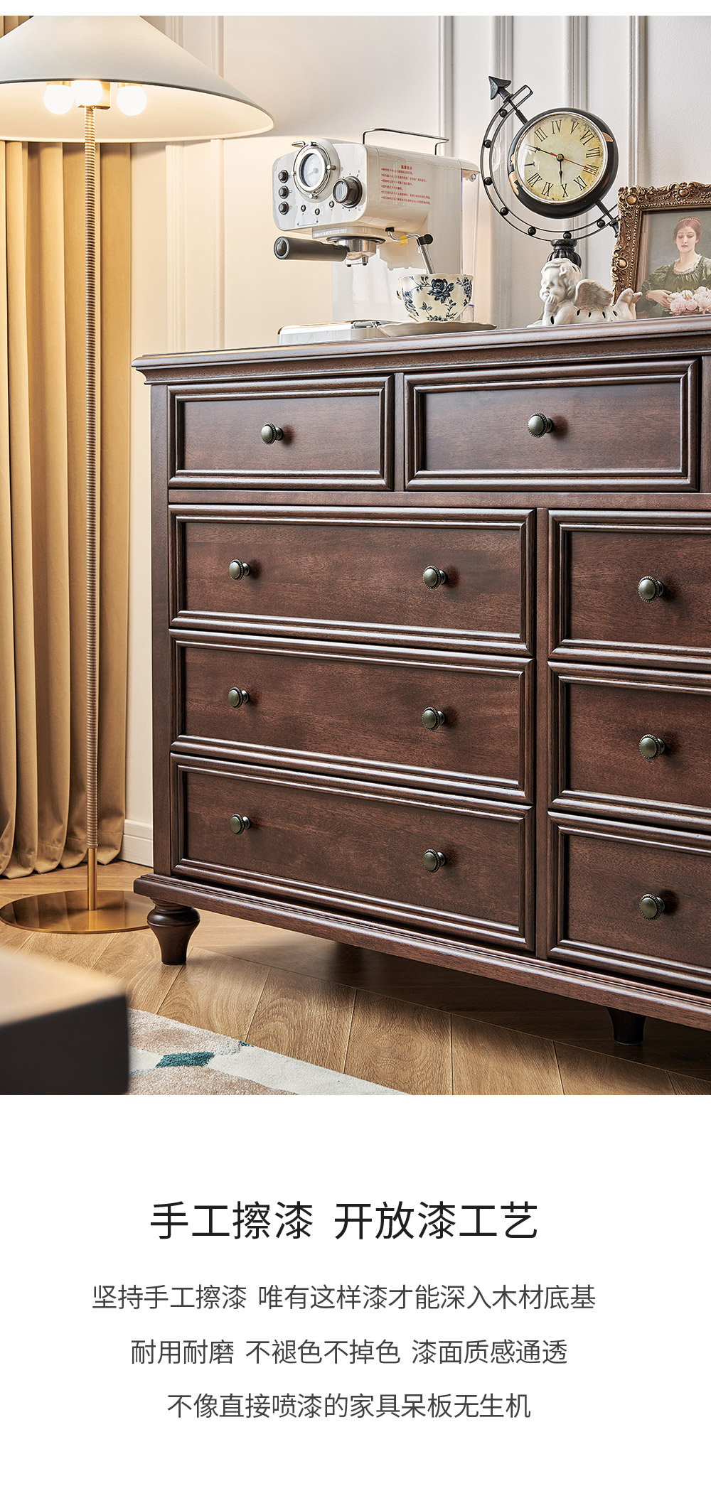 1.5米胡桃色九斗柜 全实木无辅材