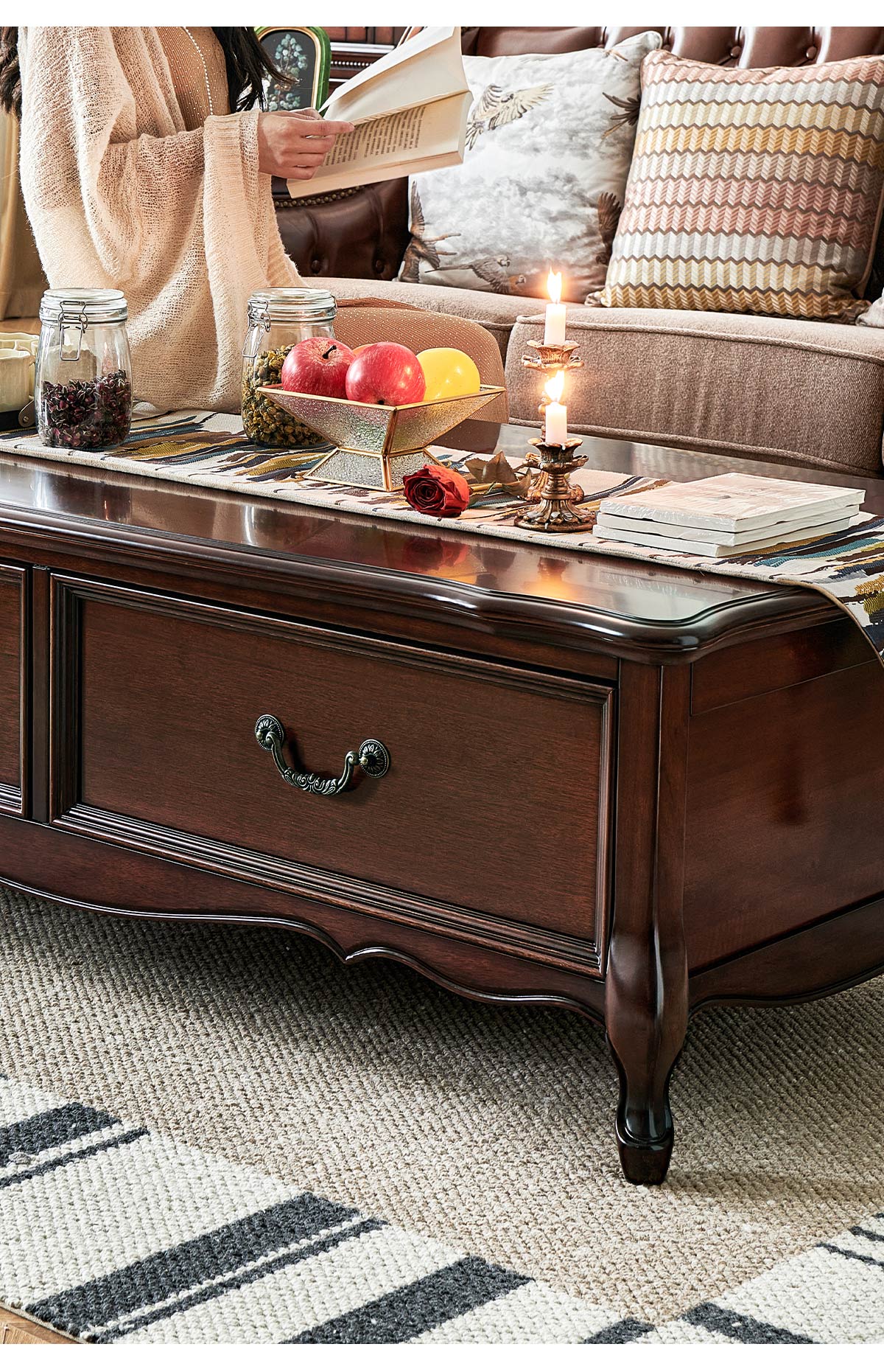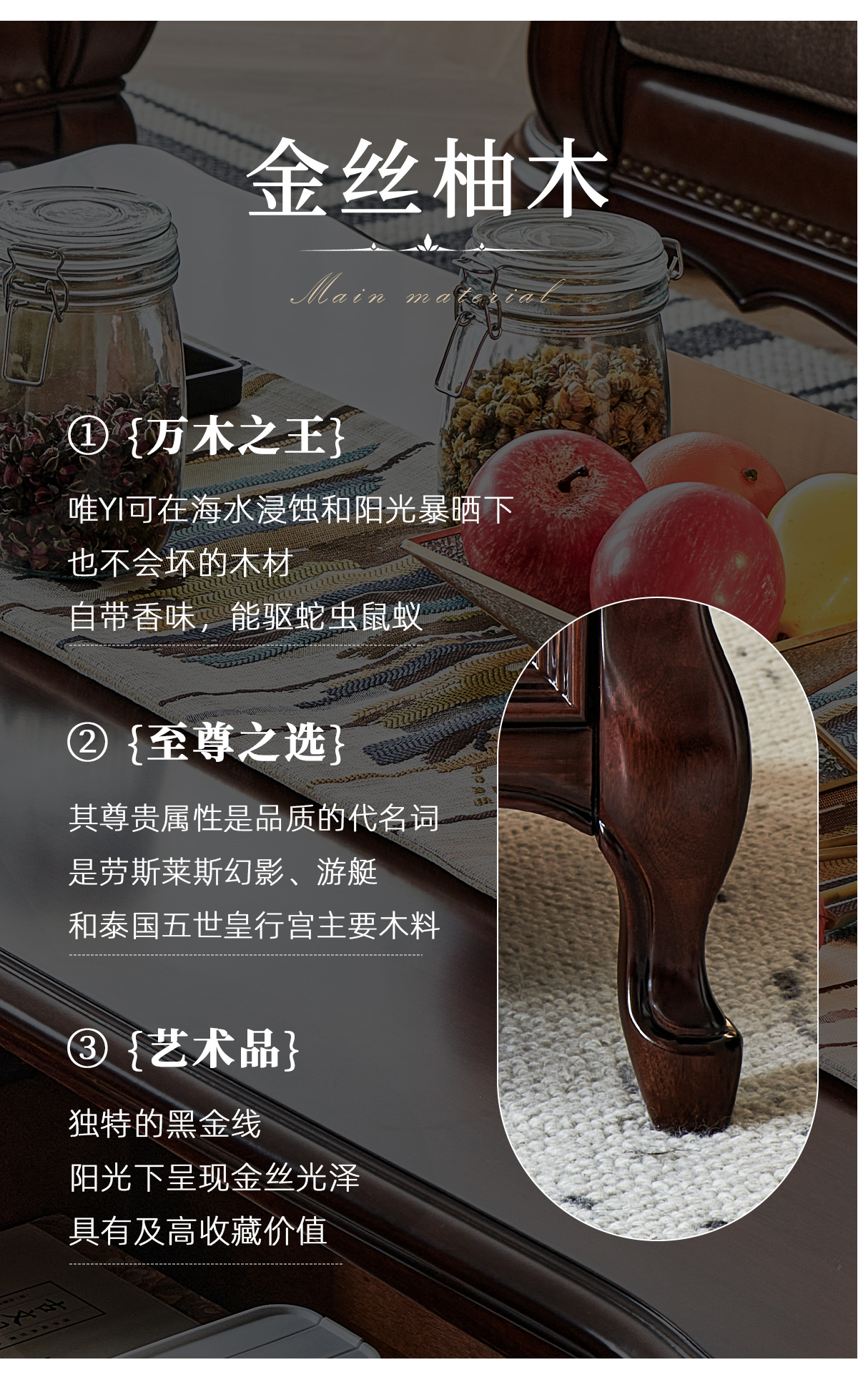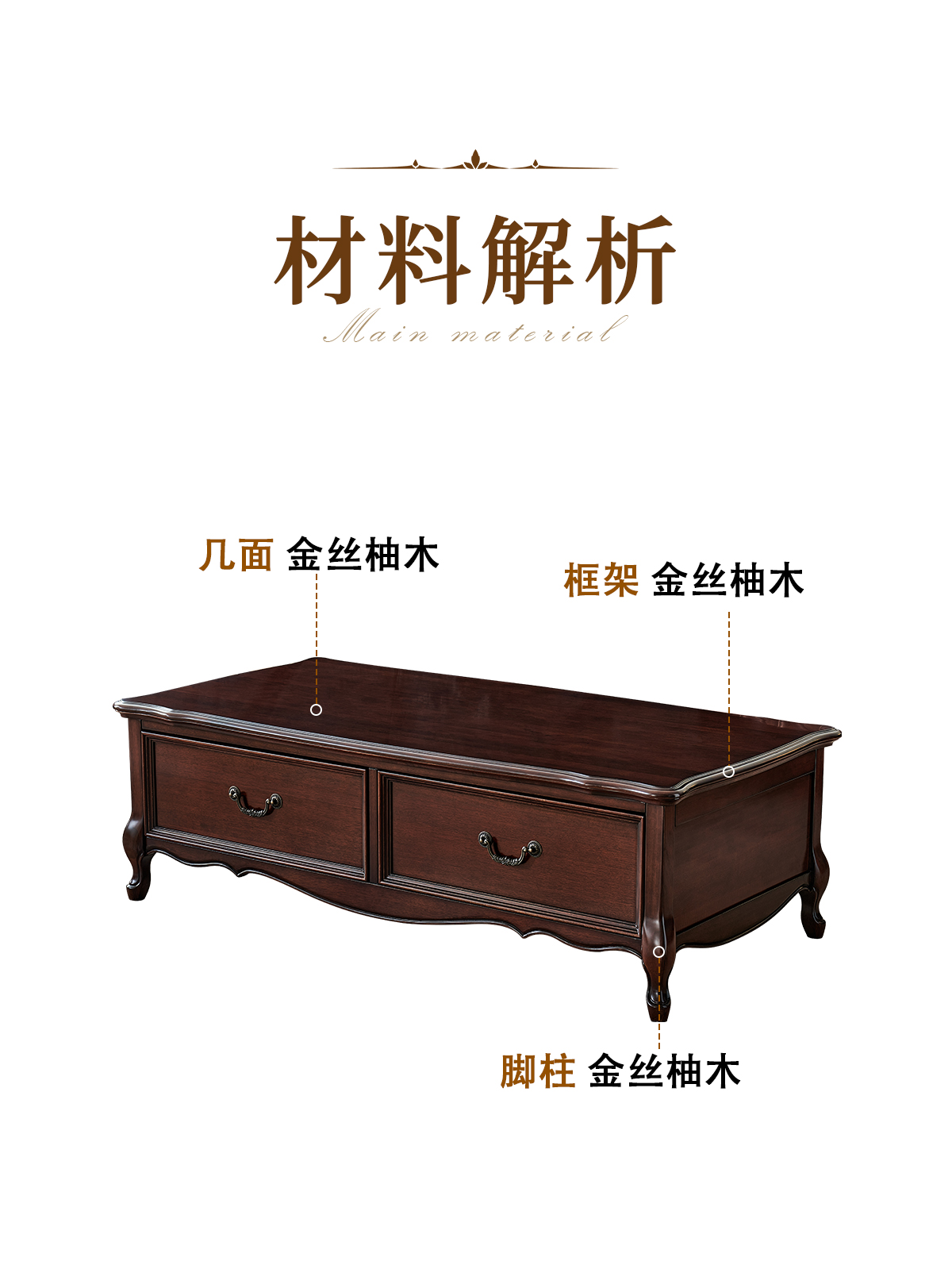 金丝柚木全实木茶几
