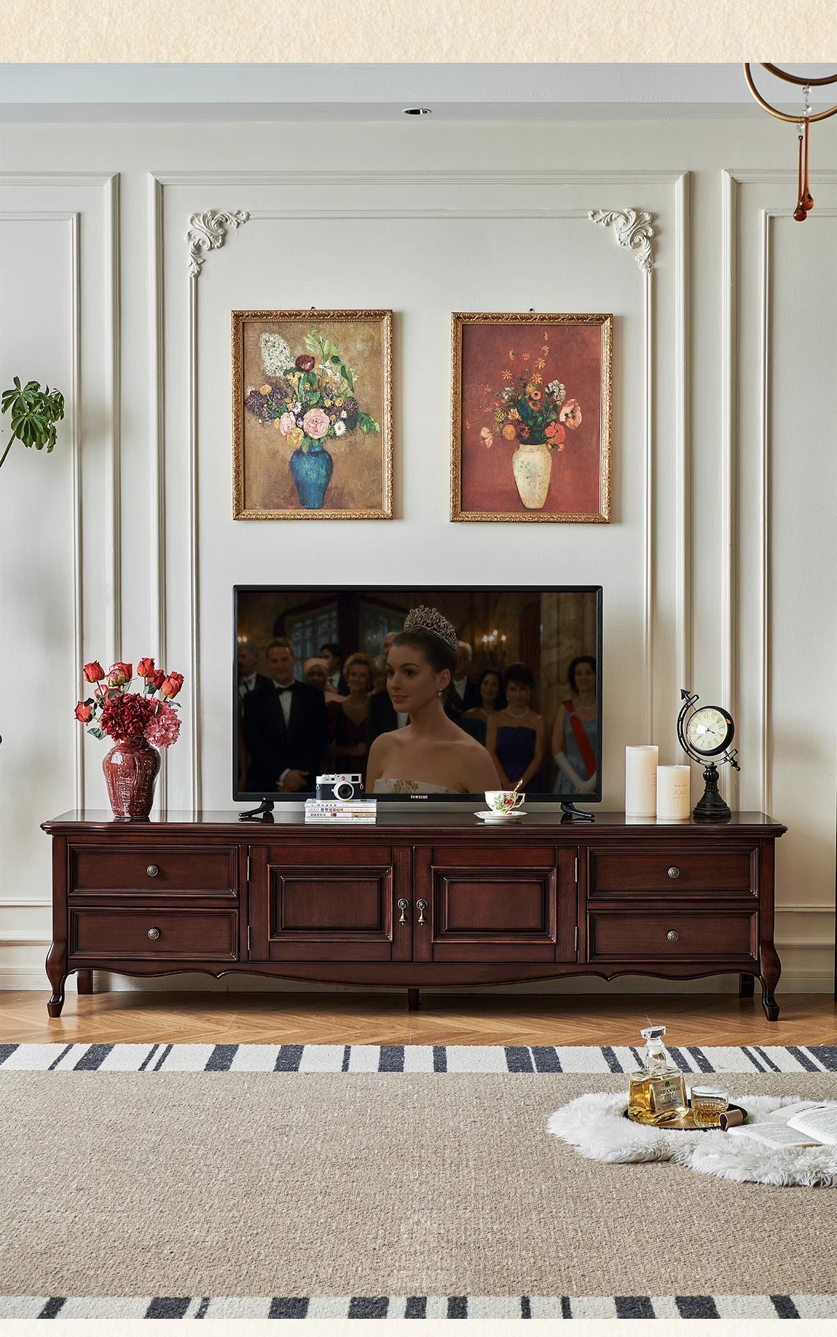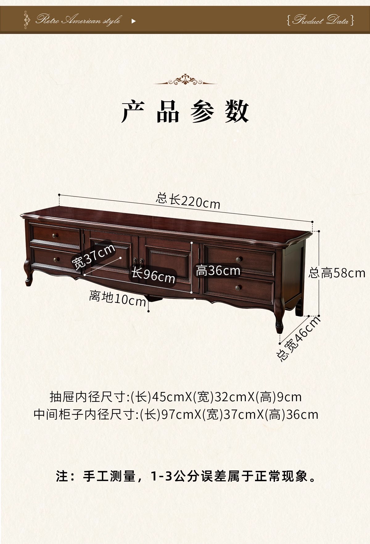 2.2m金丝柚木全实木电视柜