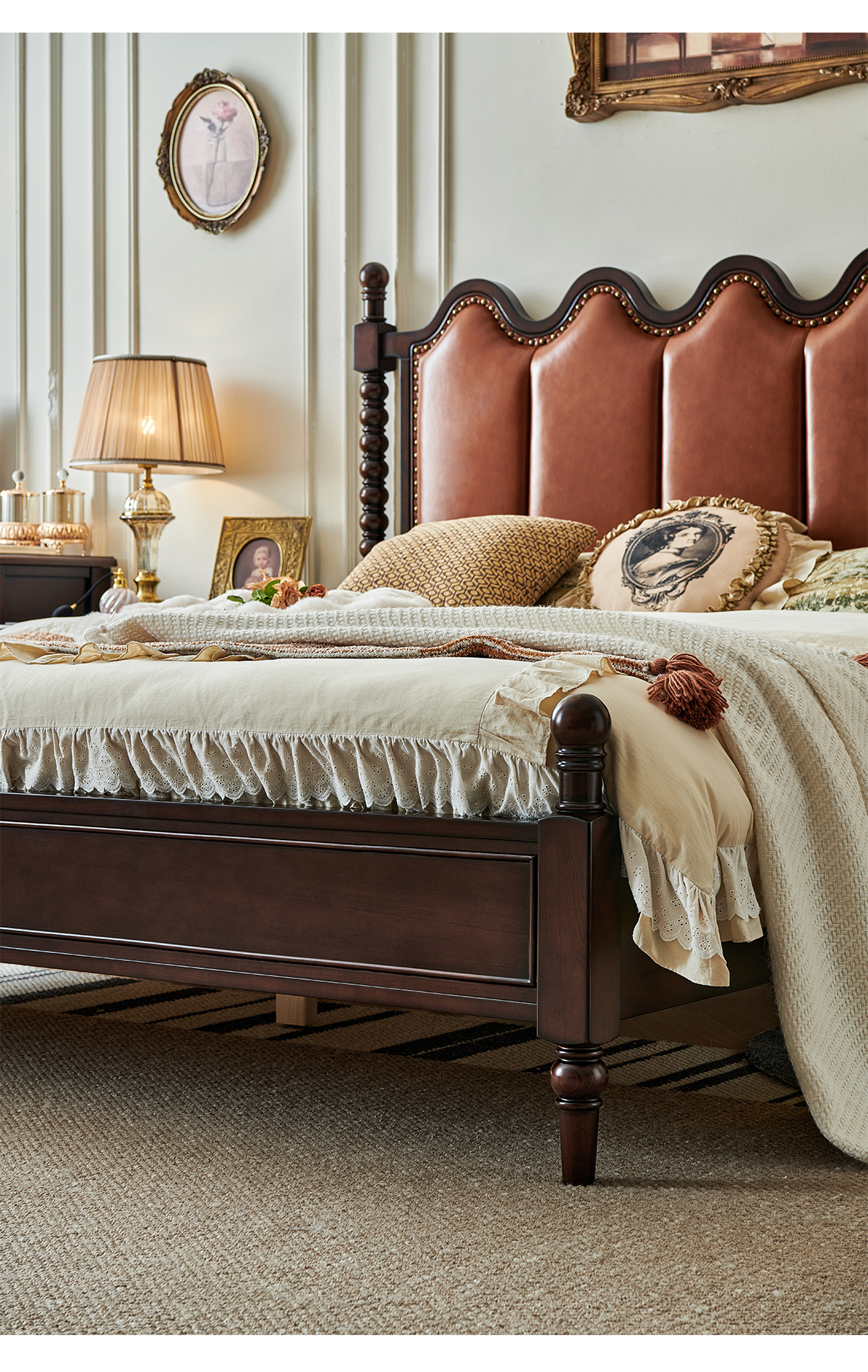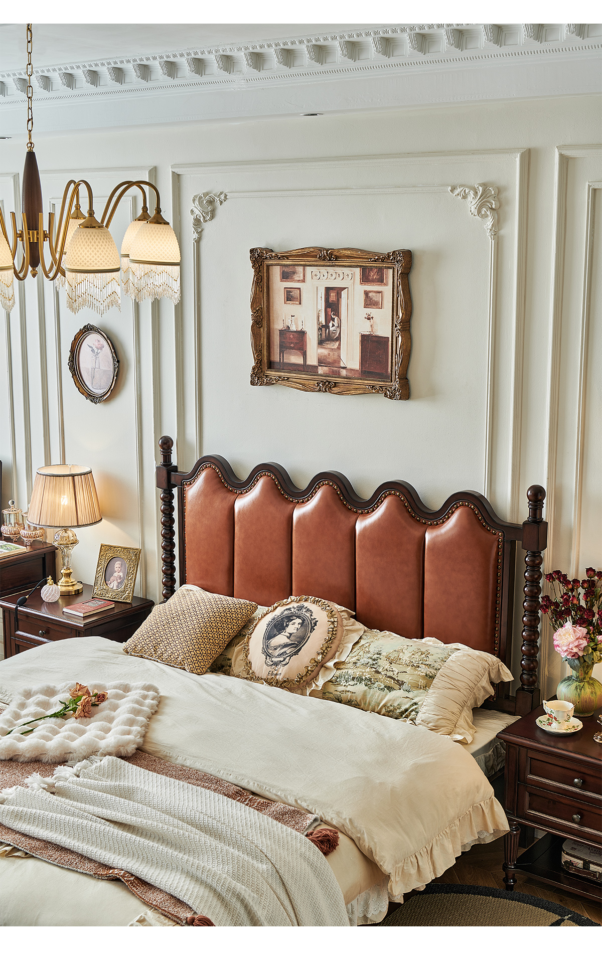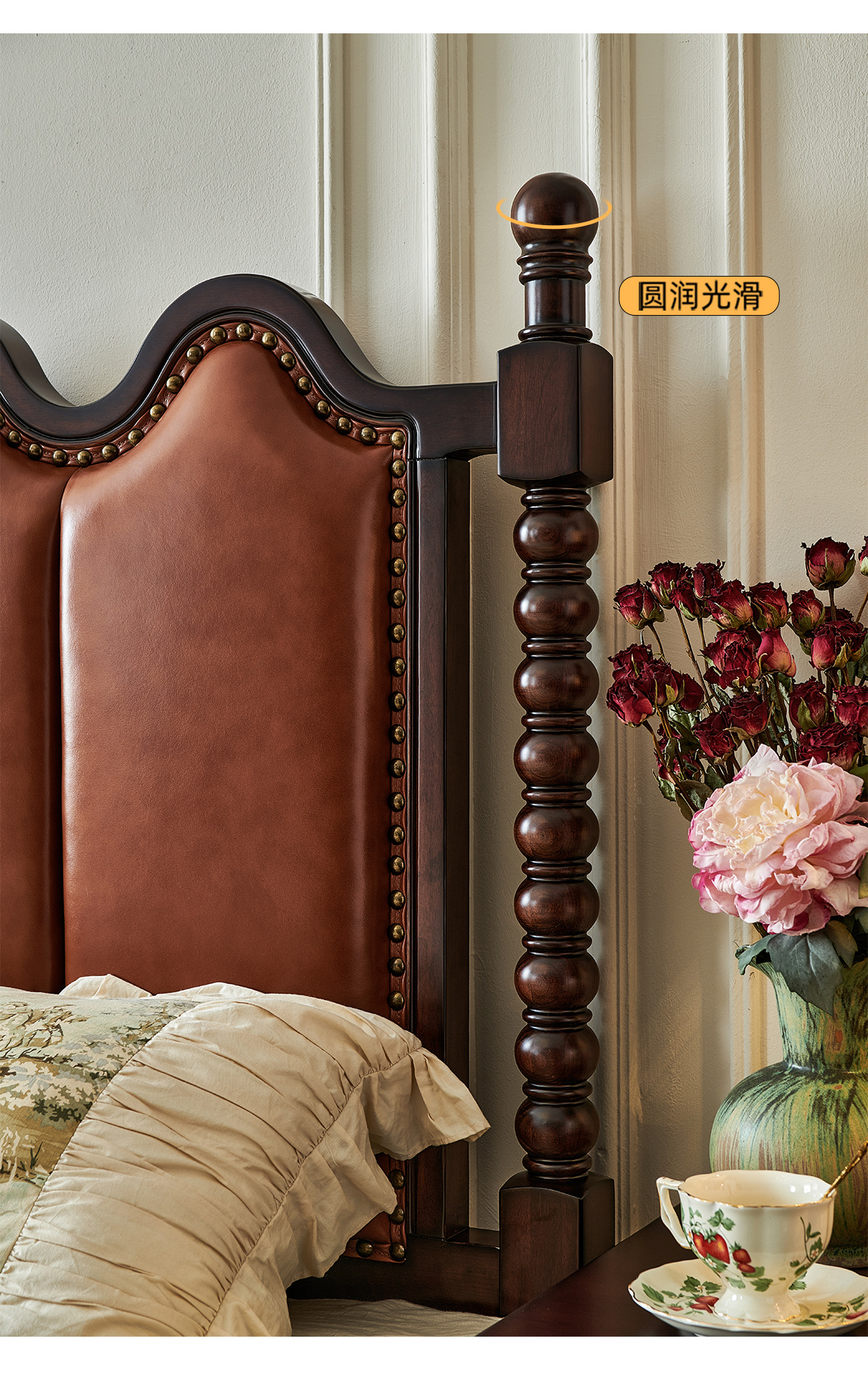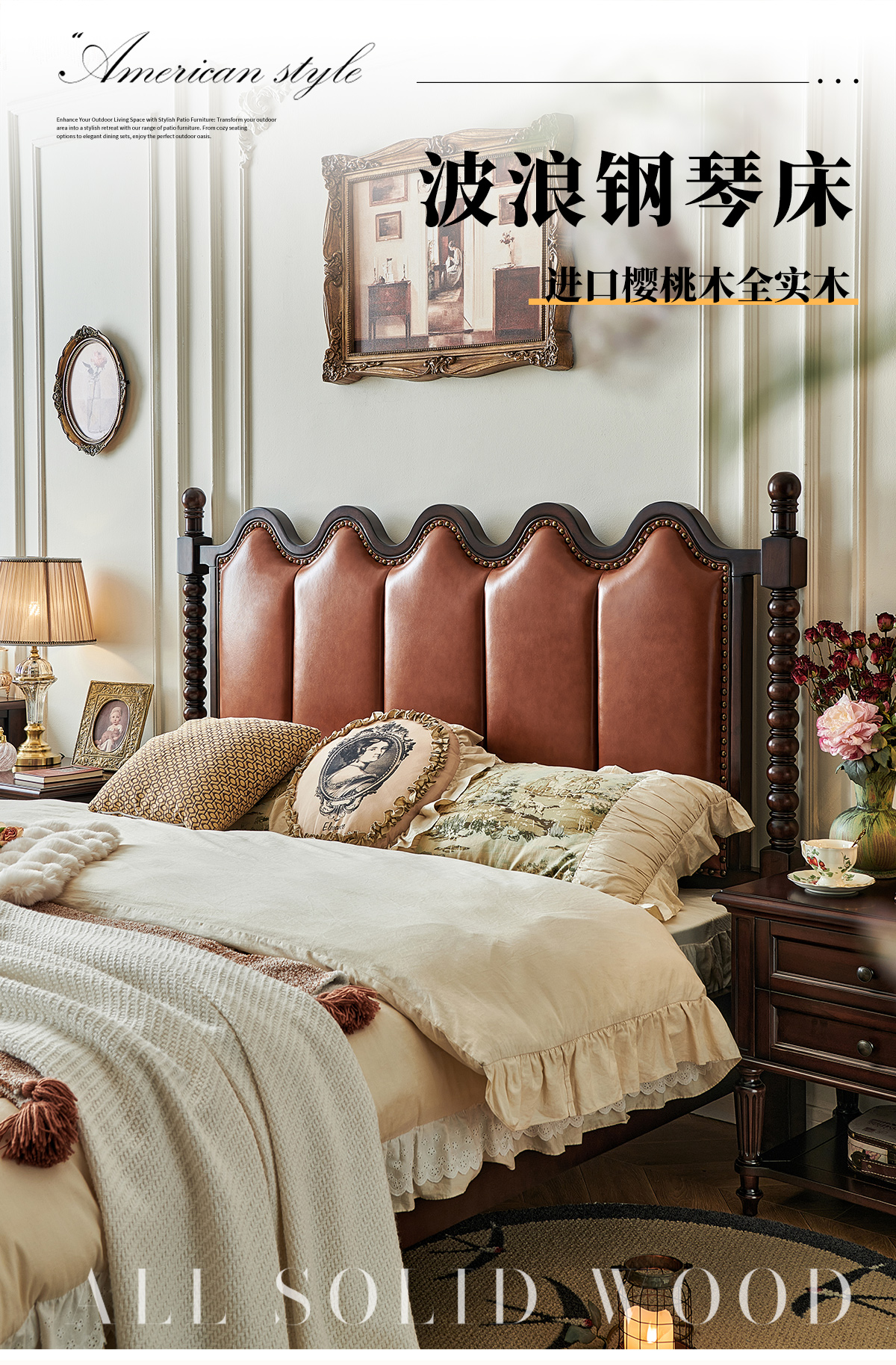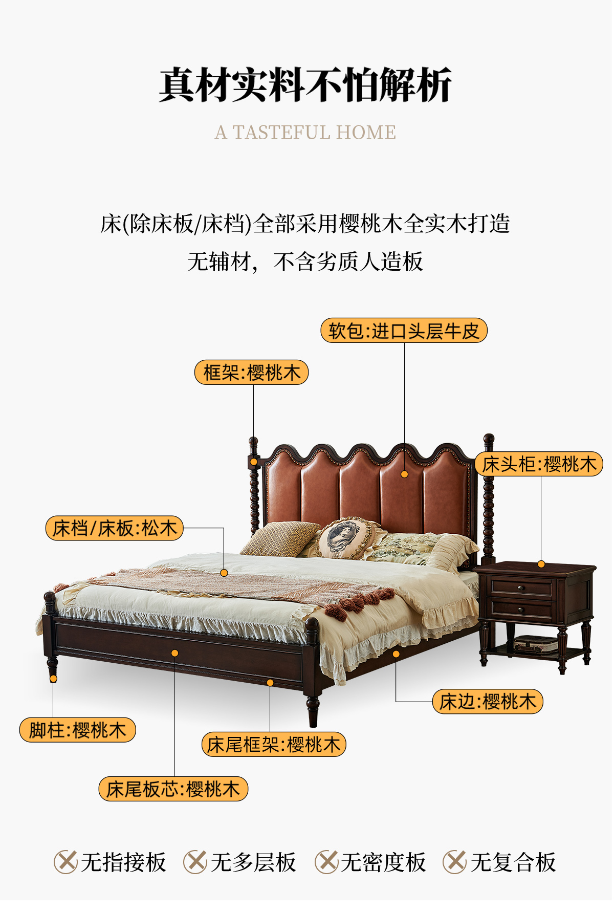 1800mm樱桃木实木真皮床+1个床头柜(双抽)