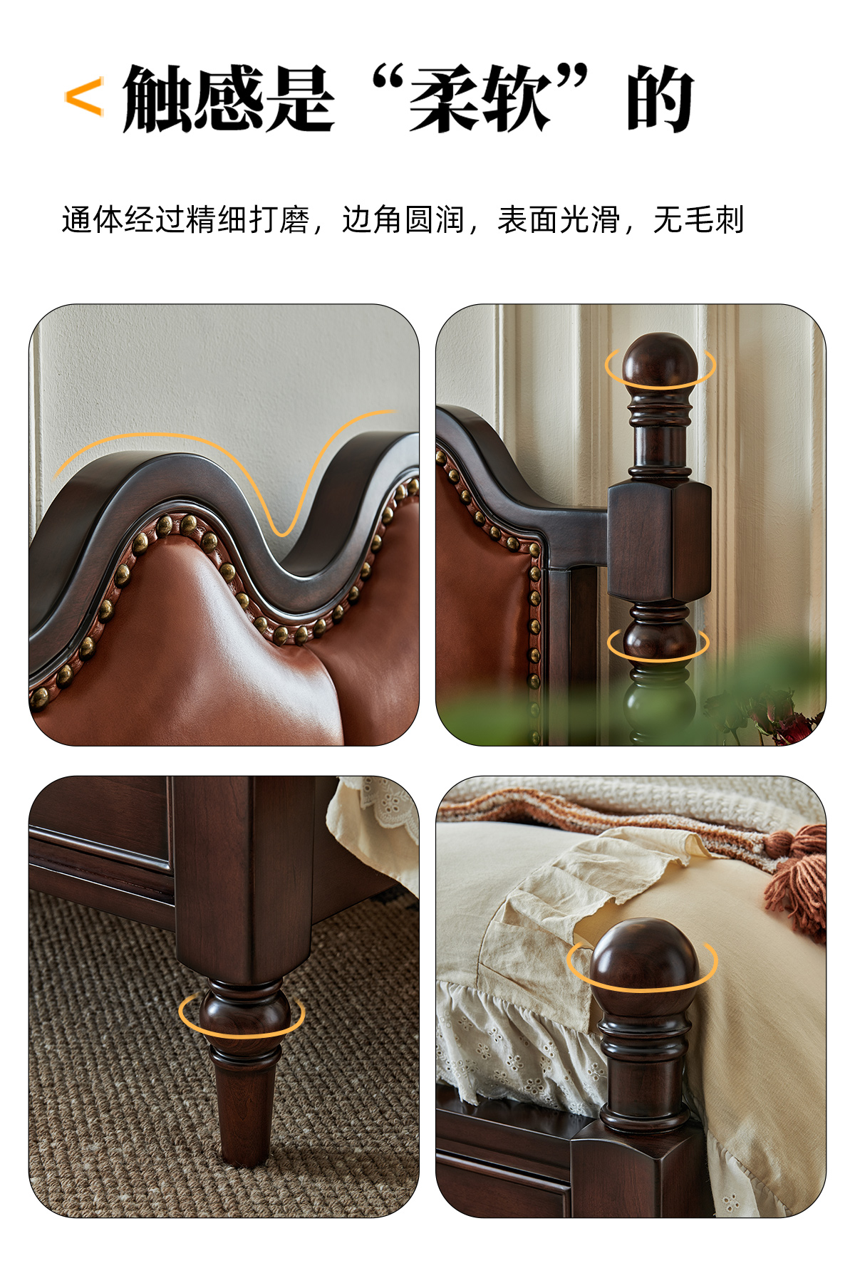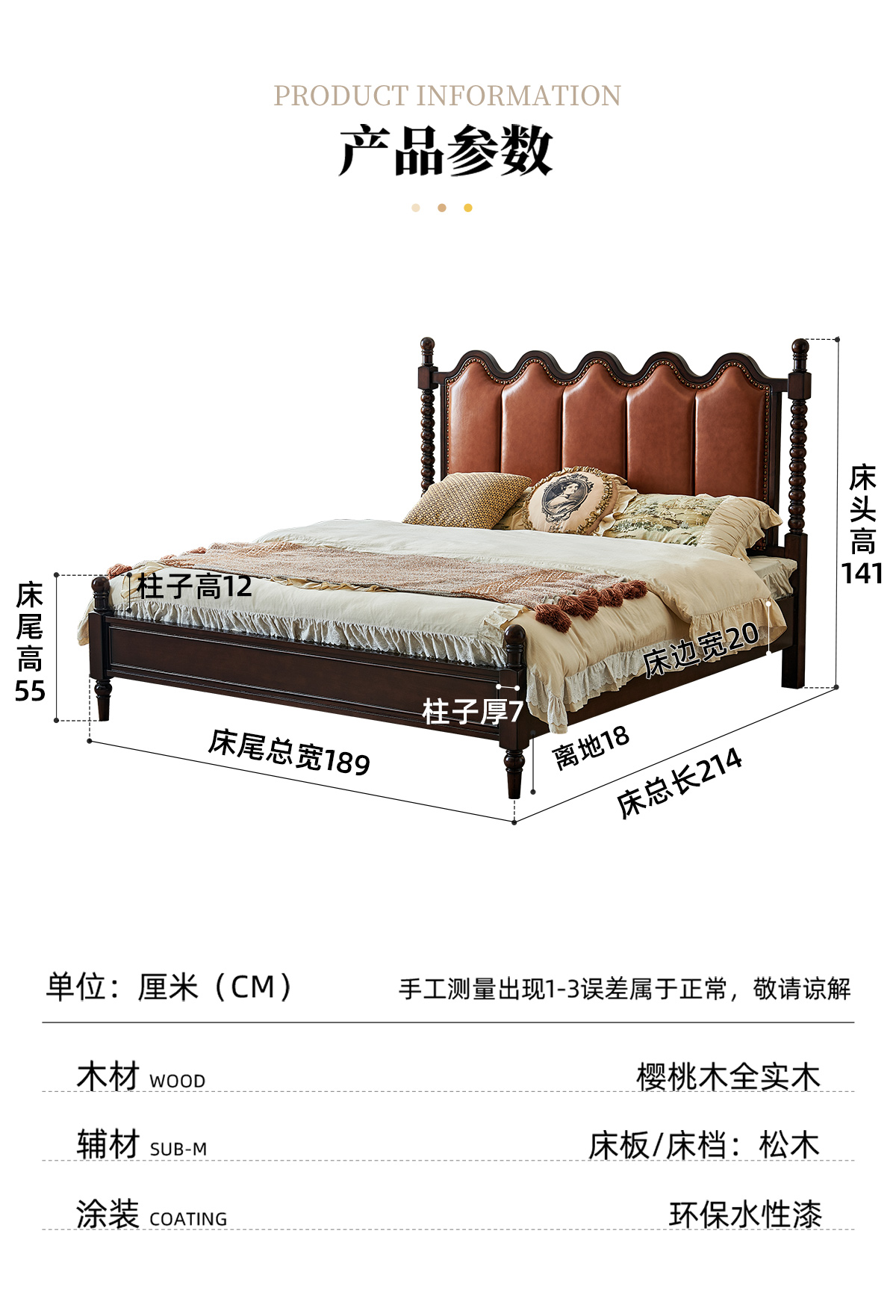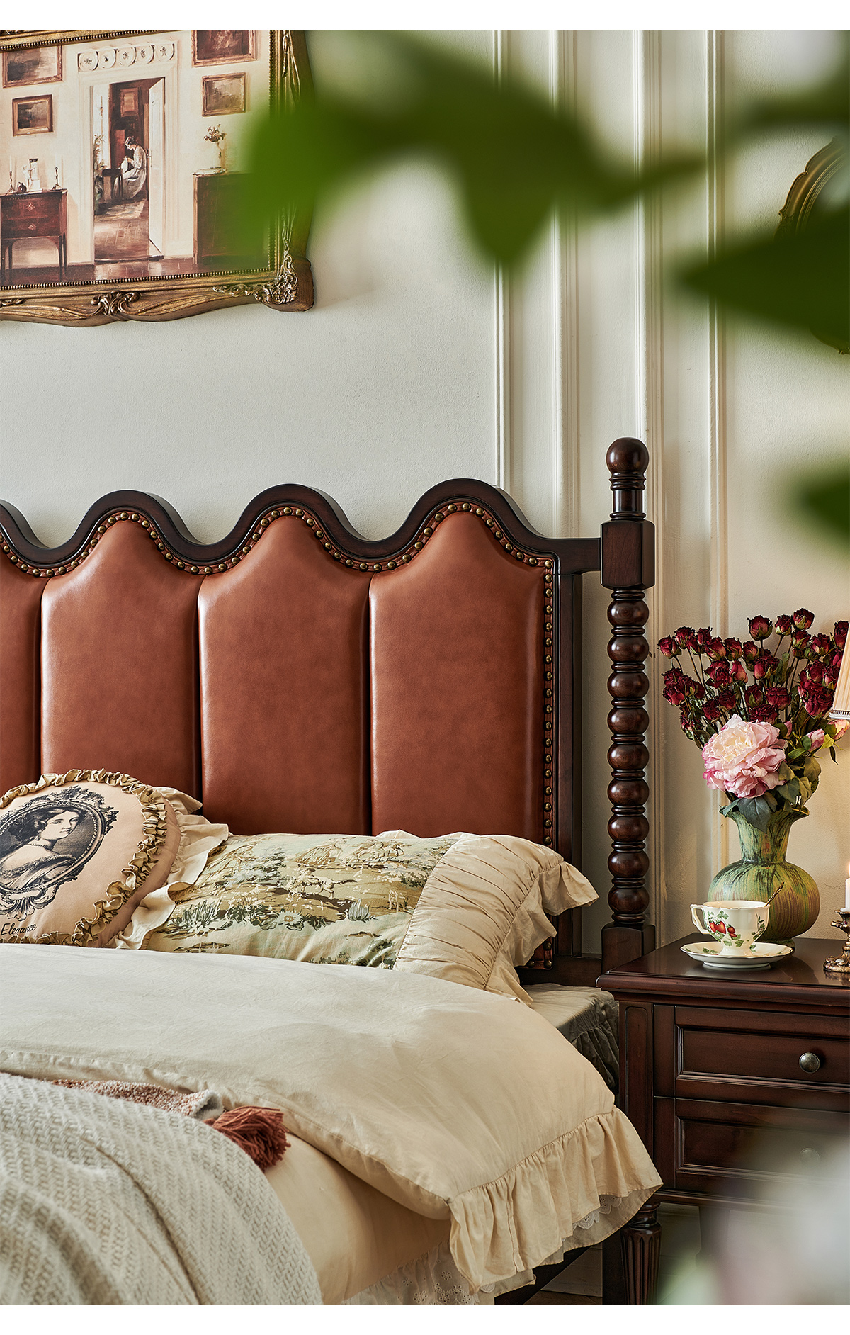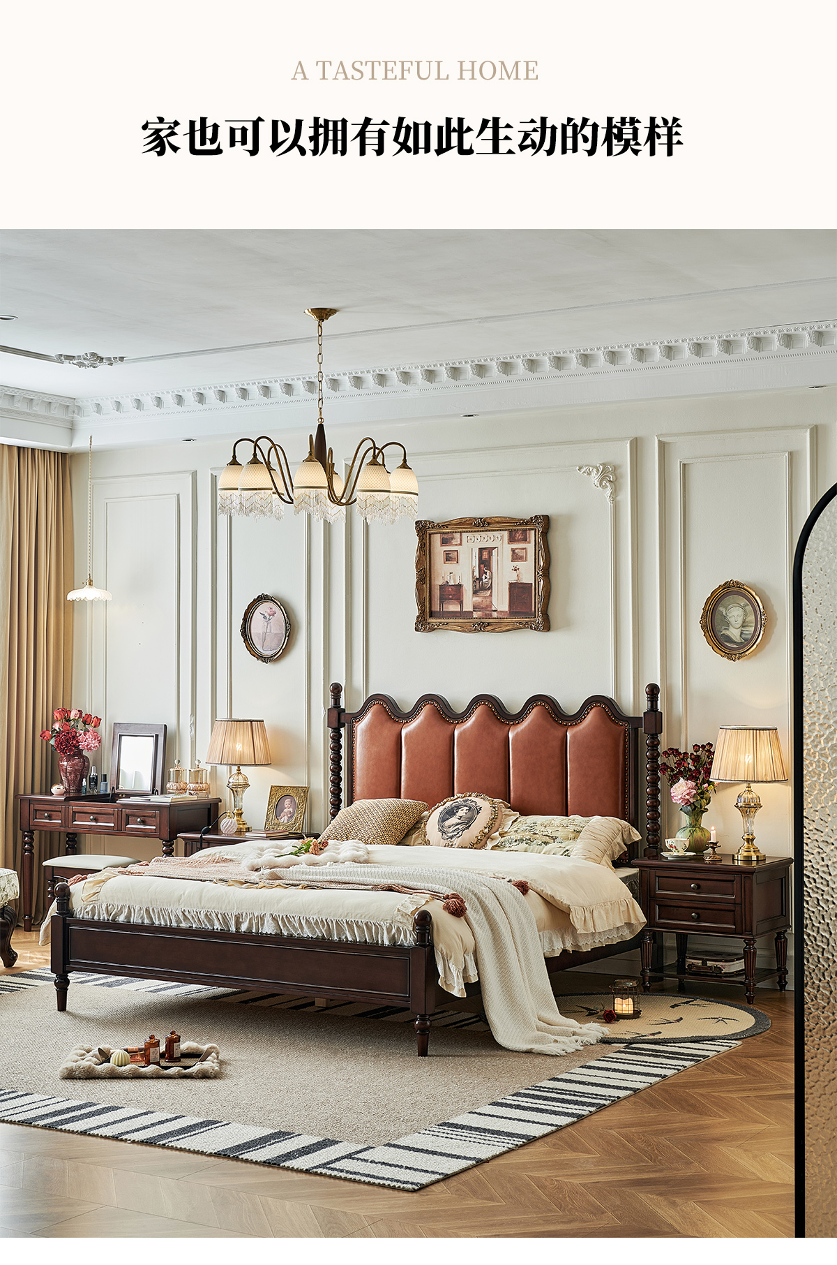 1800mm樱桃木实木真皮床+1个床头柜(双抽)