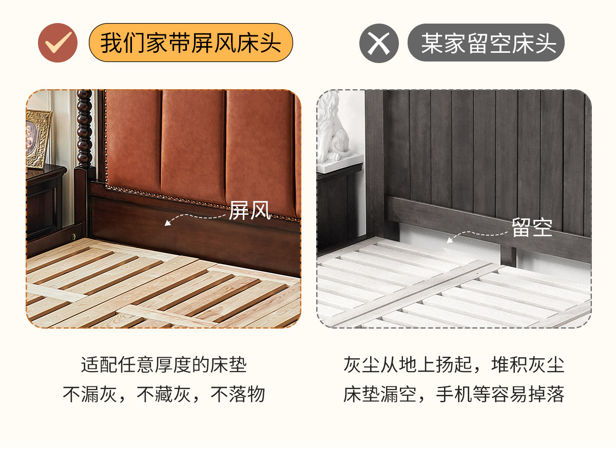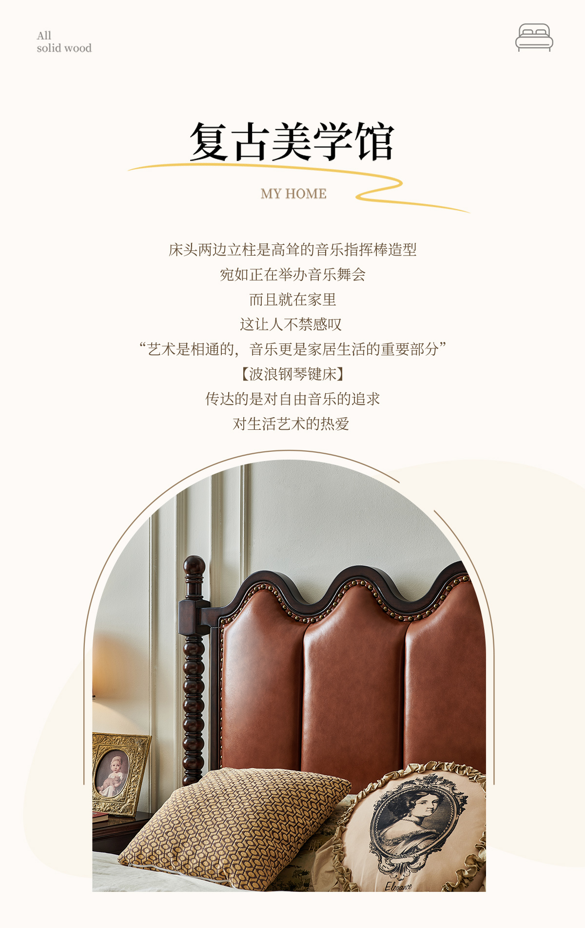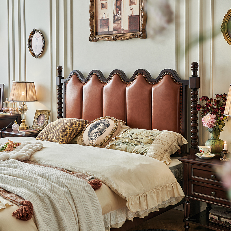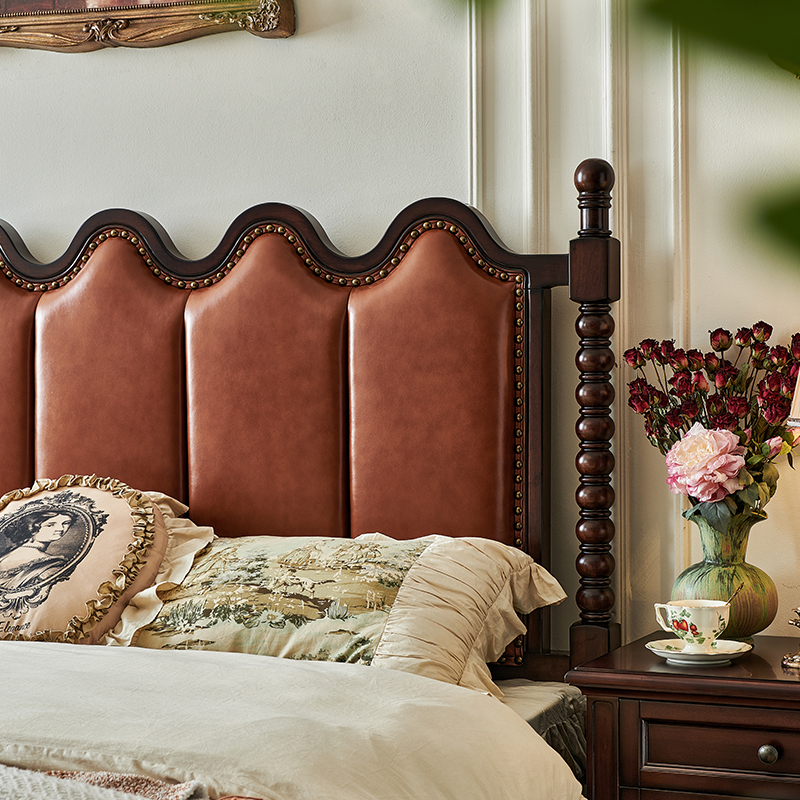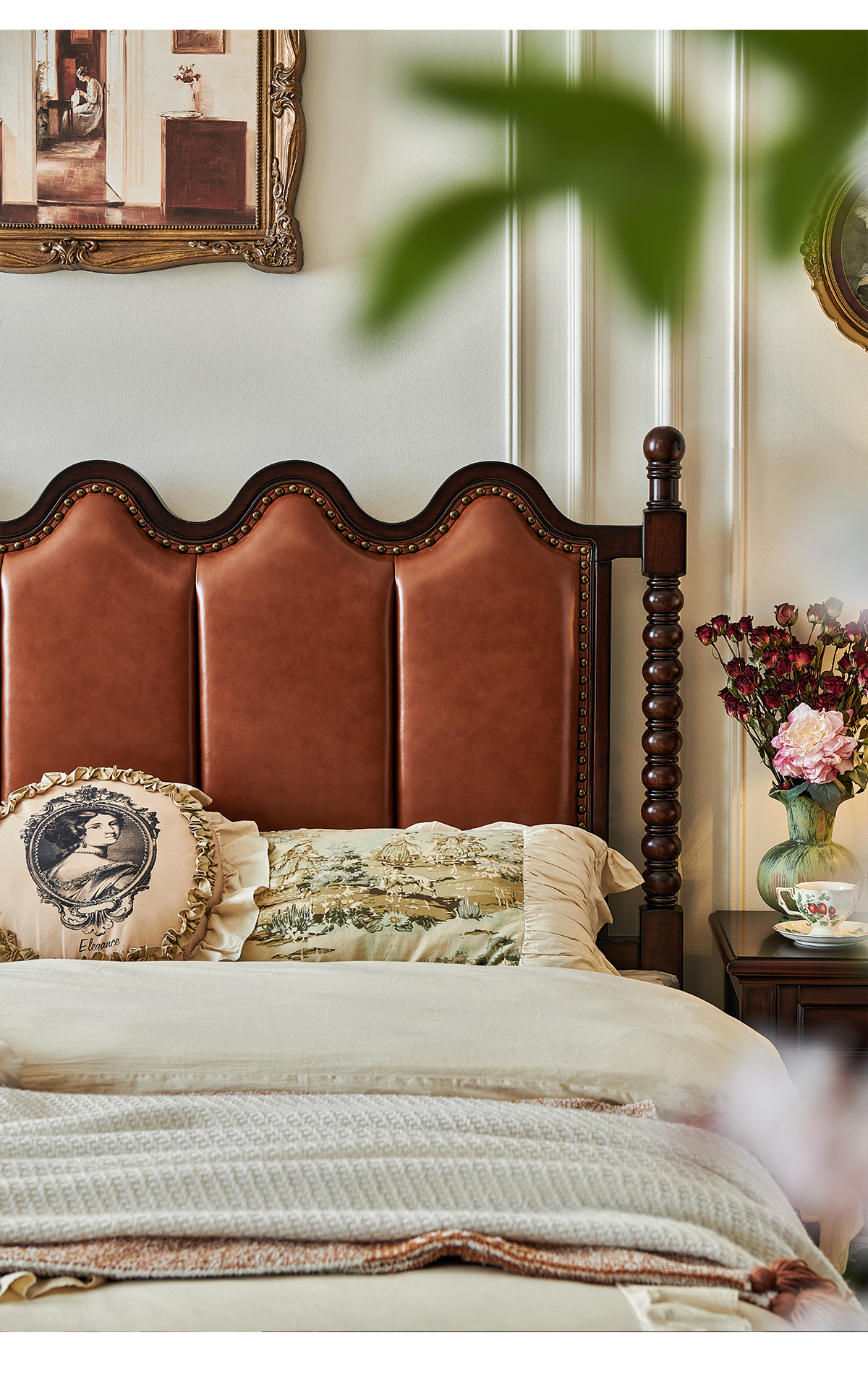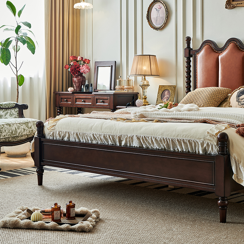 1800mm樱桃木实木真皮床+1个床头柜(双抽)