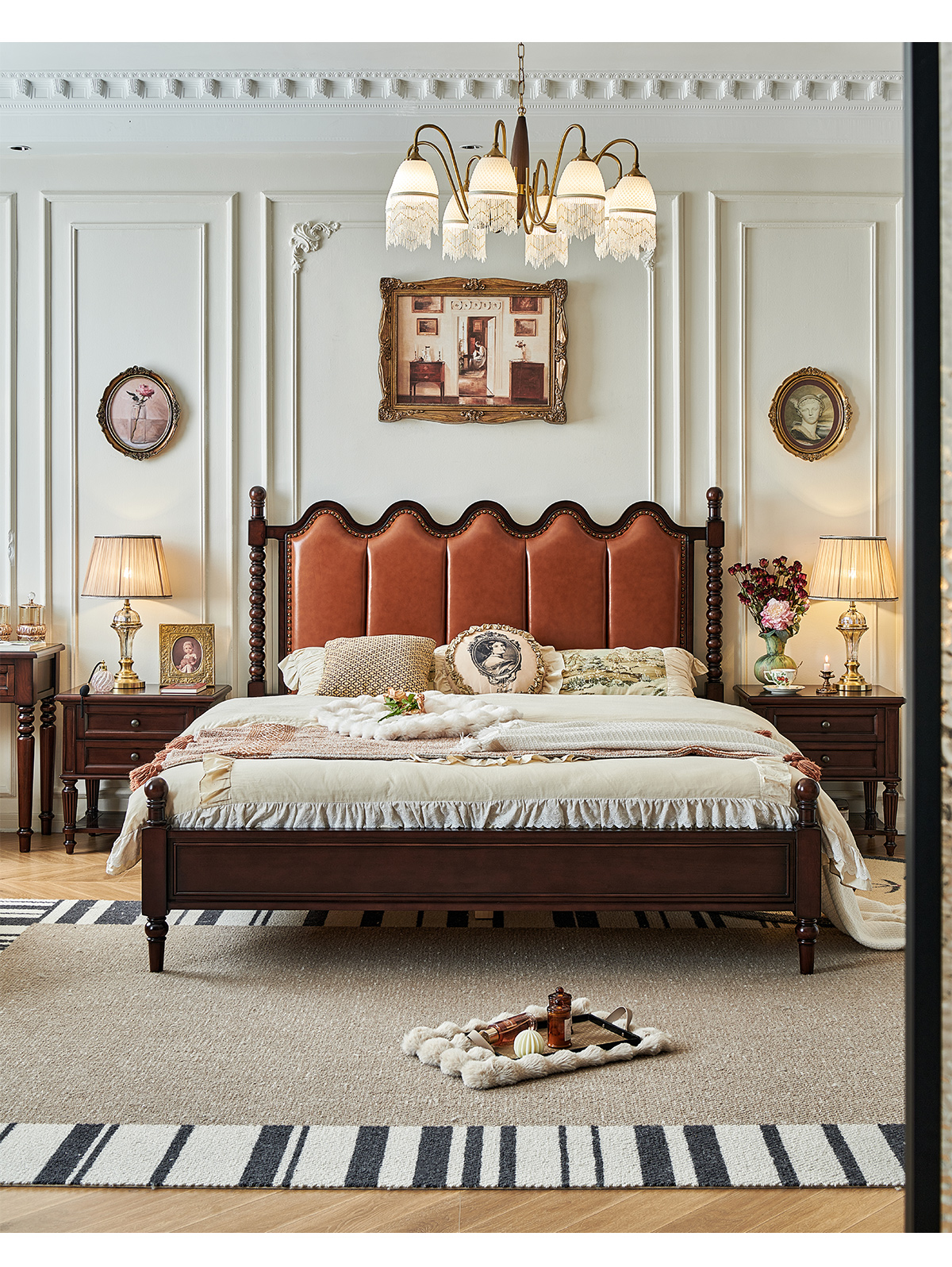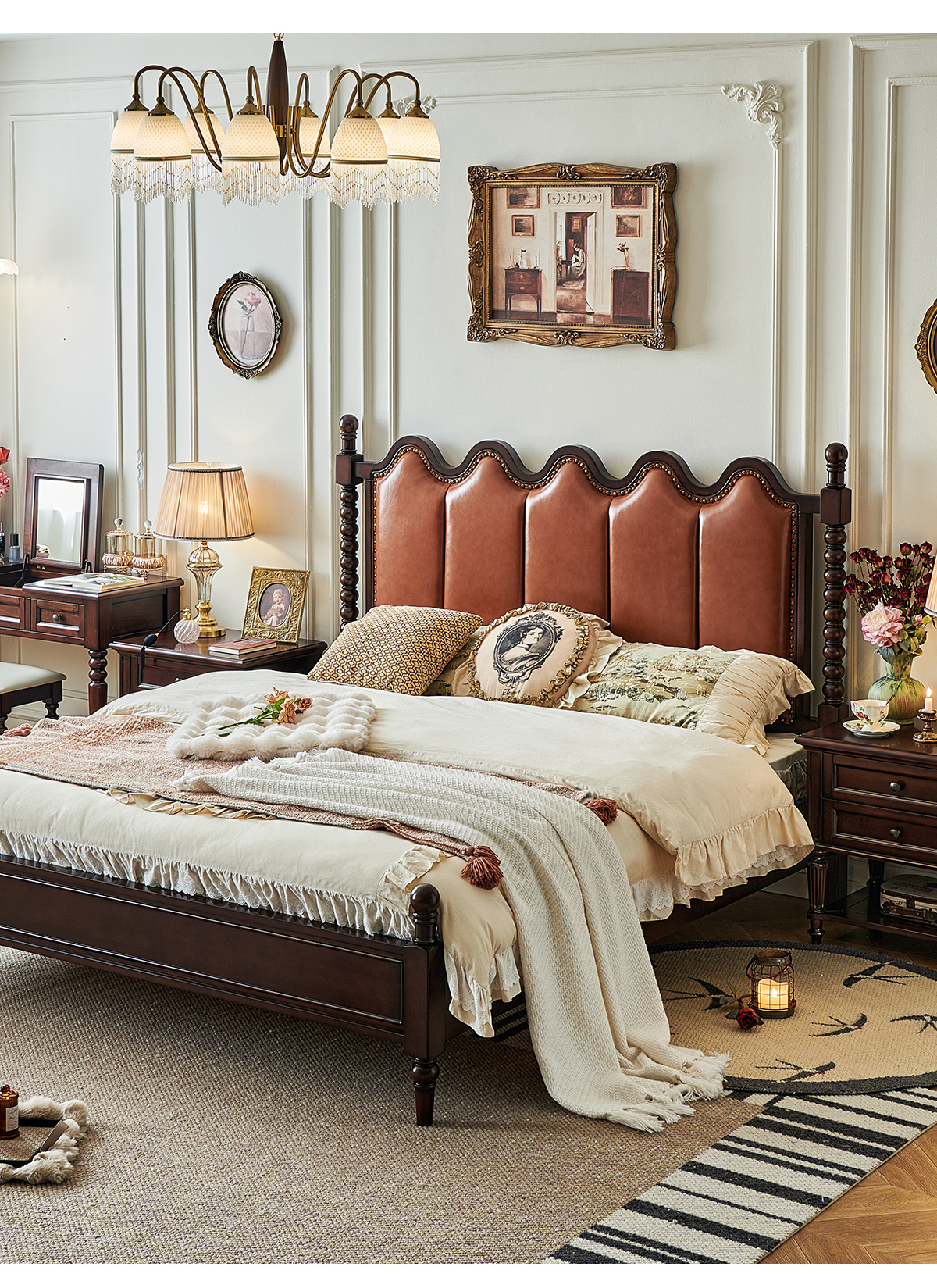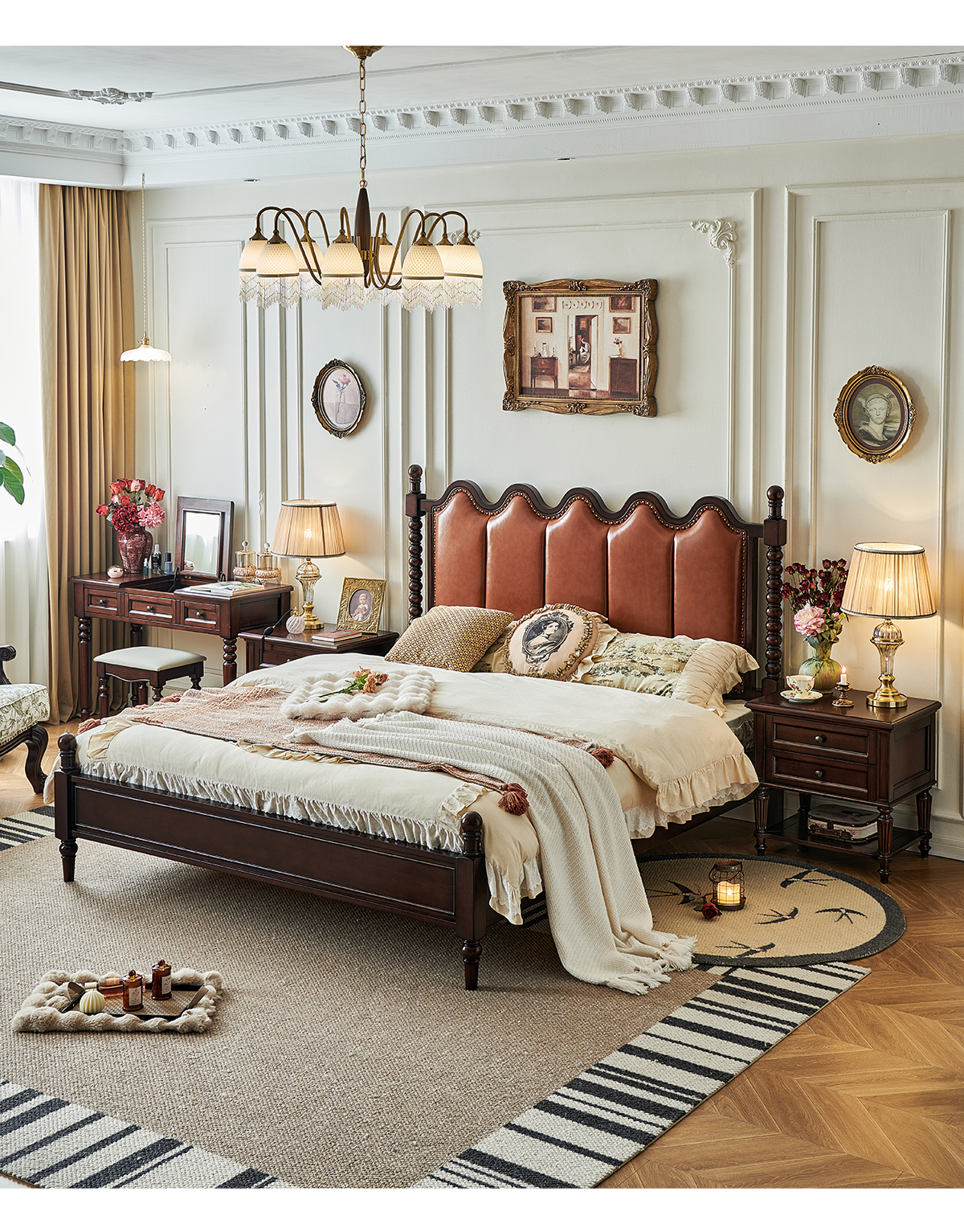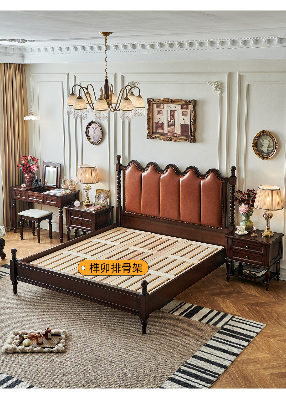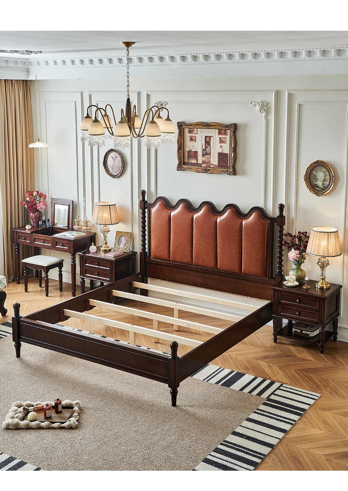 1800mm樱桃木实木真皮床+2个床头柜(双抽)