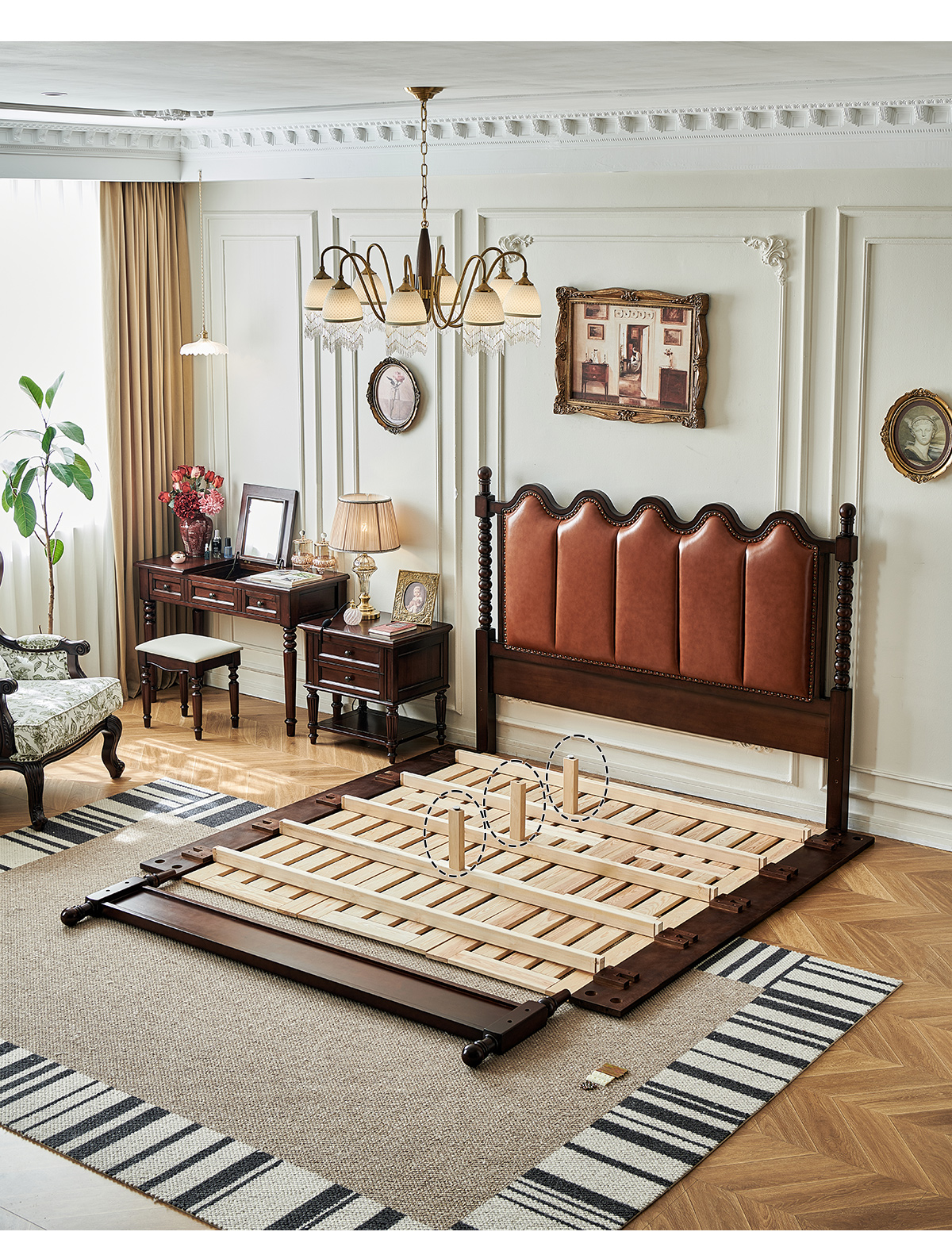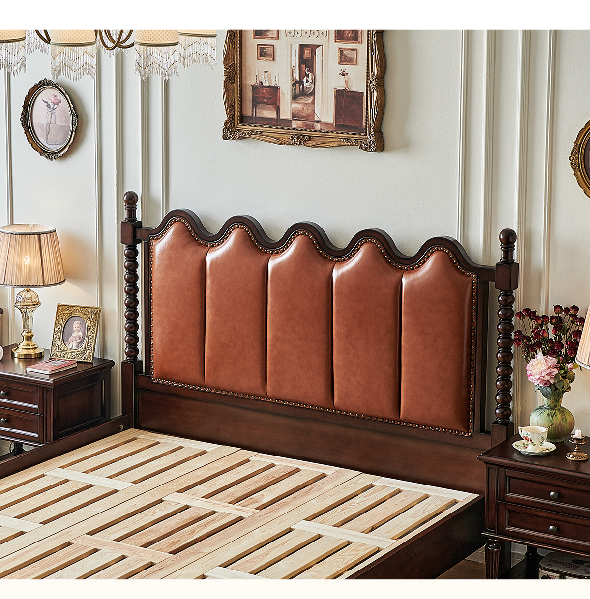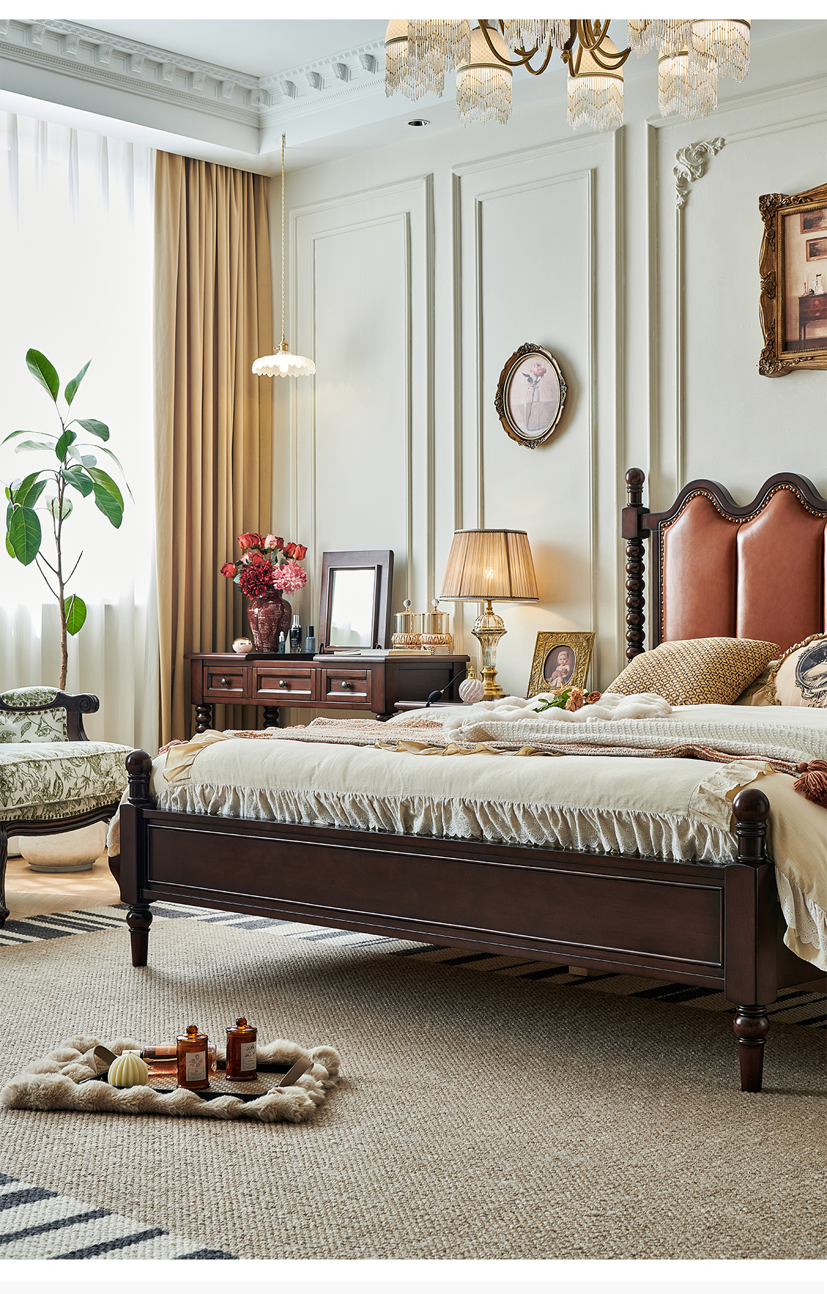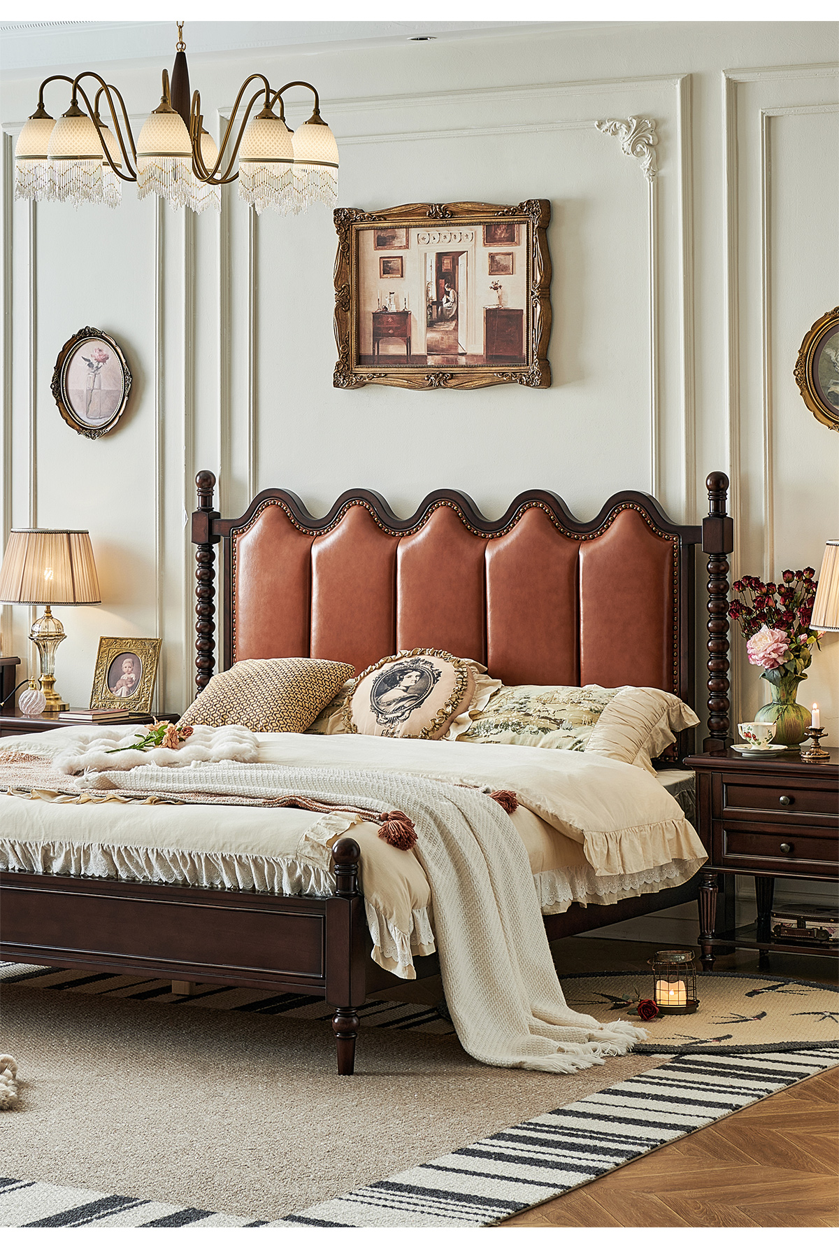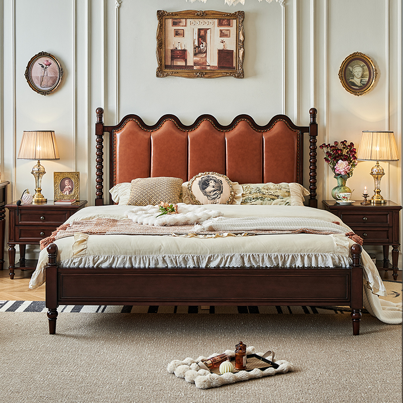 1800mm樱桃木实木真皮床+2个床头柜(双抽)